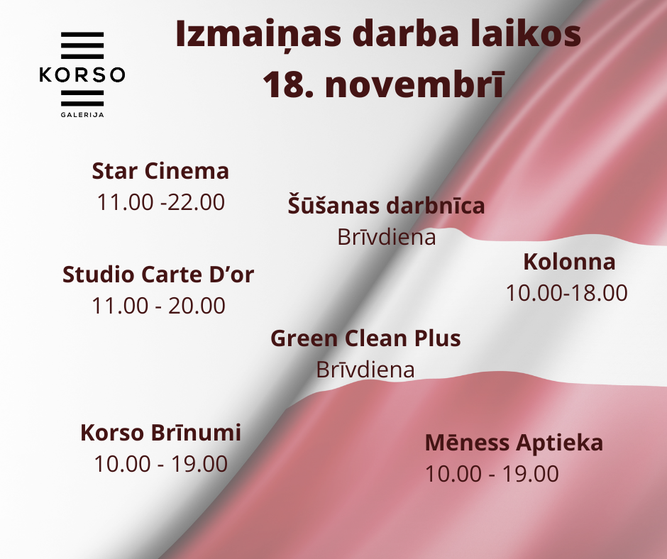 Izmaiņas darba laikos 18. novembrī.