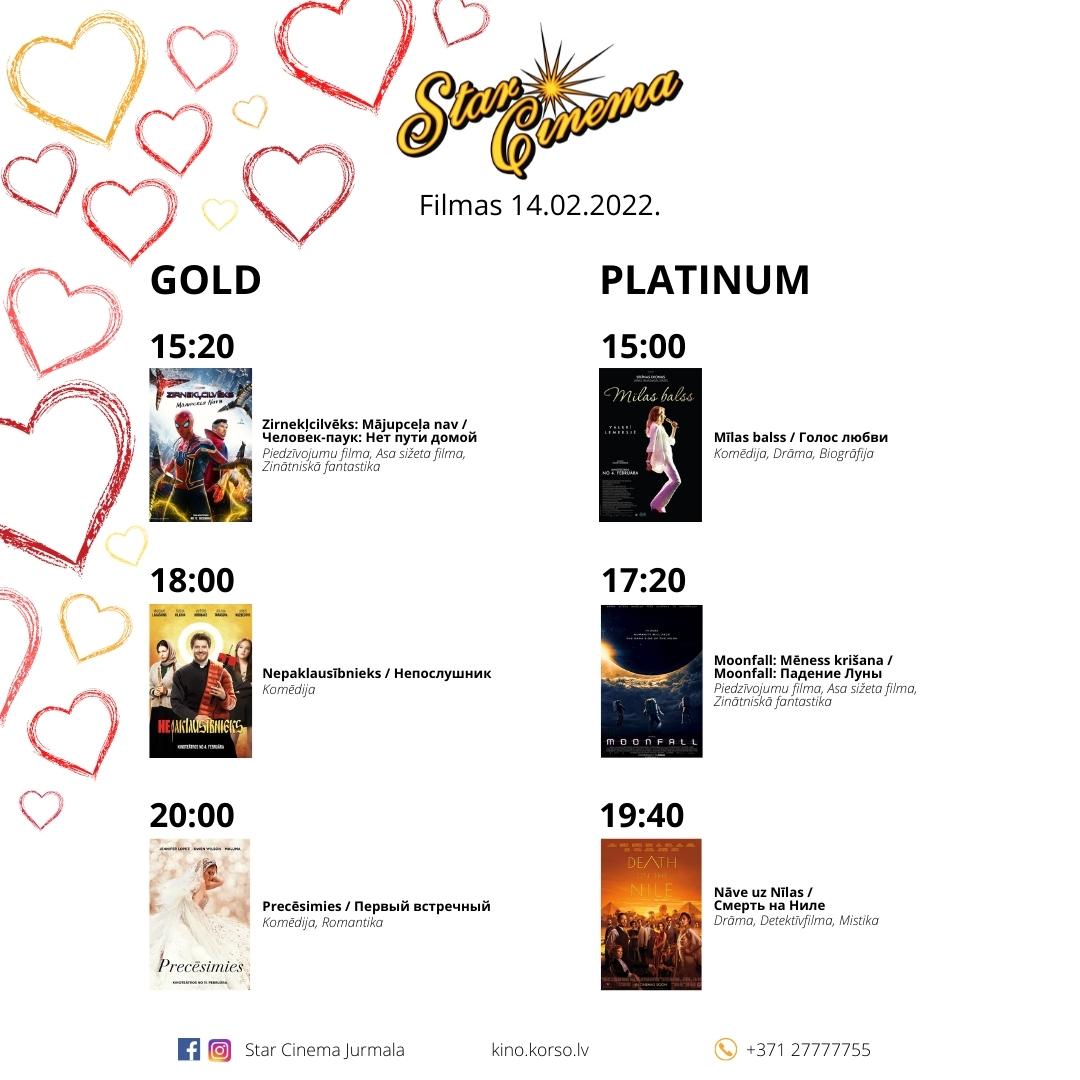 februārī Star Cinema darba laiks 15:00-22:00, labākās filmas romantiskam vakaram un saldi pārsteigumi no Laimas!