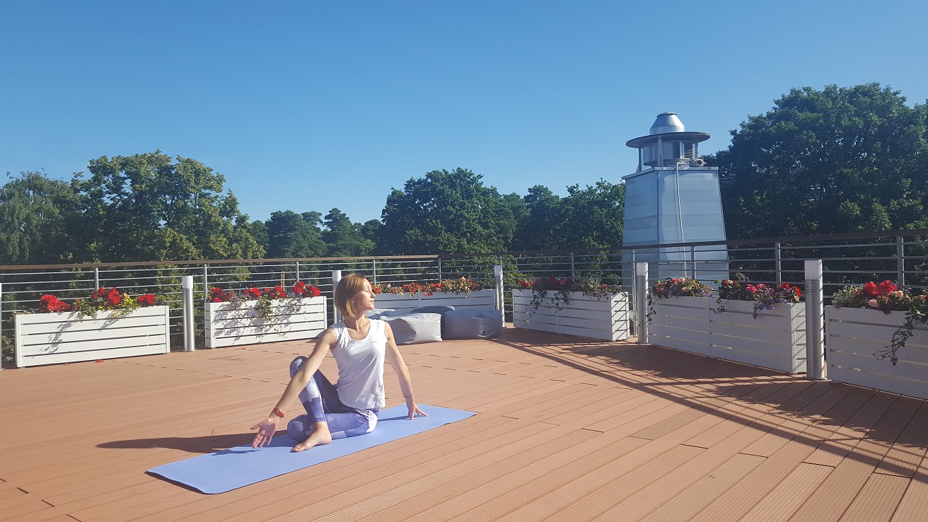 Galerija KORSO aicina uz rīta jogas nodarbībām skaistajā jumta terasē!Rīts ir labvēlīgākas laiks jogas praksei. Tā dabīgais svaigums un tīrā enerģija veicina smalkāku noskaņošanos, ielādē ar možumu un miera sajūtu. Mūsu nodarbībās jūs gaida maigās elpošanas tehnikas, vingrinājumi locītavām, asanas un dziļa relaksācija Tibetas skanošā trauka pavadībā! Nodarbības vada Jekaterina Bērtule – indiešu un tibetiešu jogas praktiķe ar 10 gadu pieredzi. Mācījusies pie pazīstamajiem pasniedzējiem no Latvijas, Krievijas, Ukrainas, Ziemeļindijā, kā arī pie Tibetas lamām. Ieguvusi jogas speciālista kvalifikāciju Eiropas Tibetas medicīnas un jogas akadēmijā Latvijā. Beigusi starptautiska līmeņa pasniedzēju kursu Ziemeļindijā.