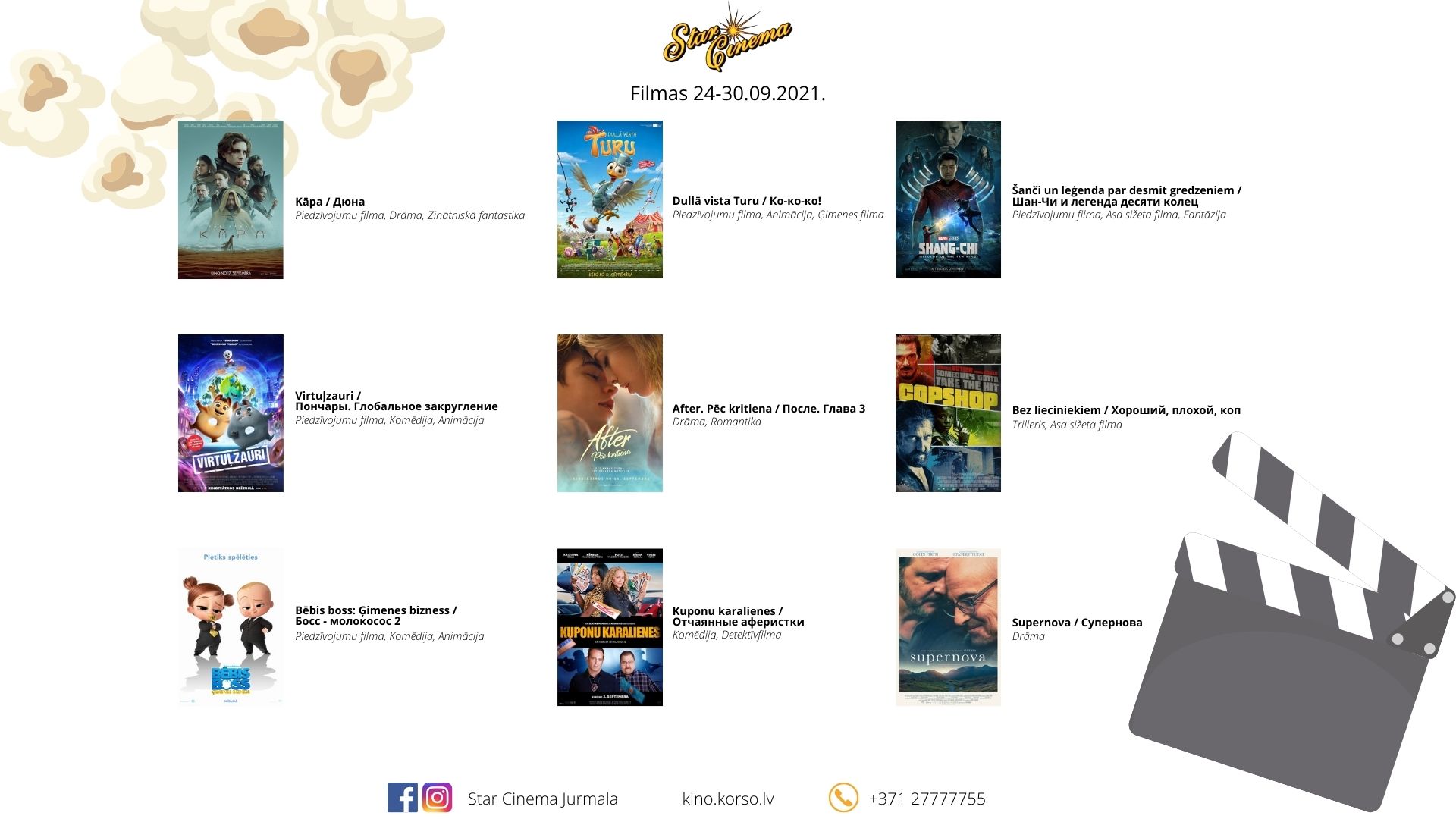 Jaunākās filmas no Star Cinema Jūrmala 24.09.-30.10.