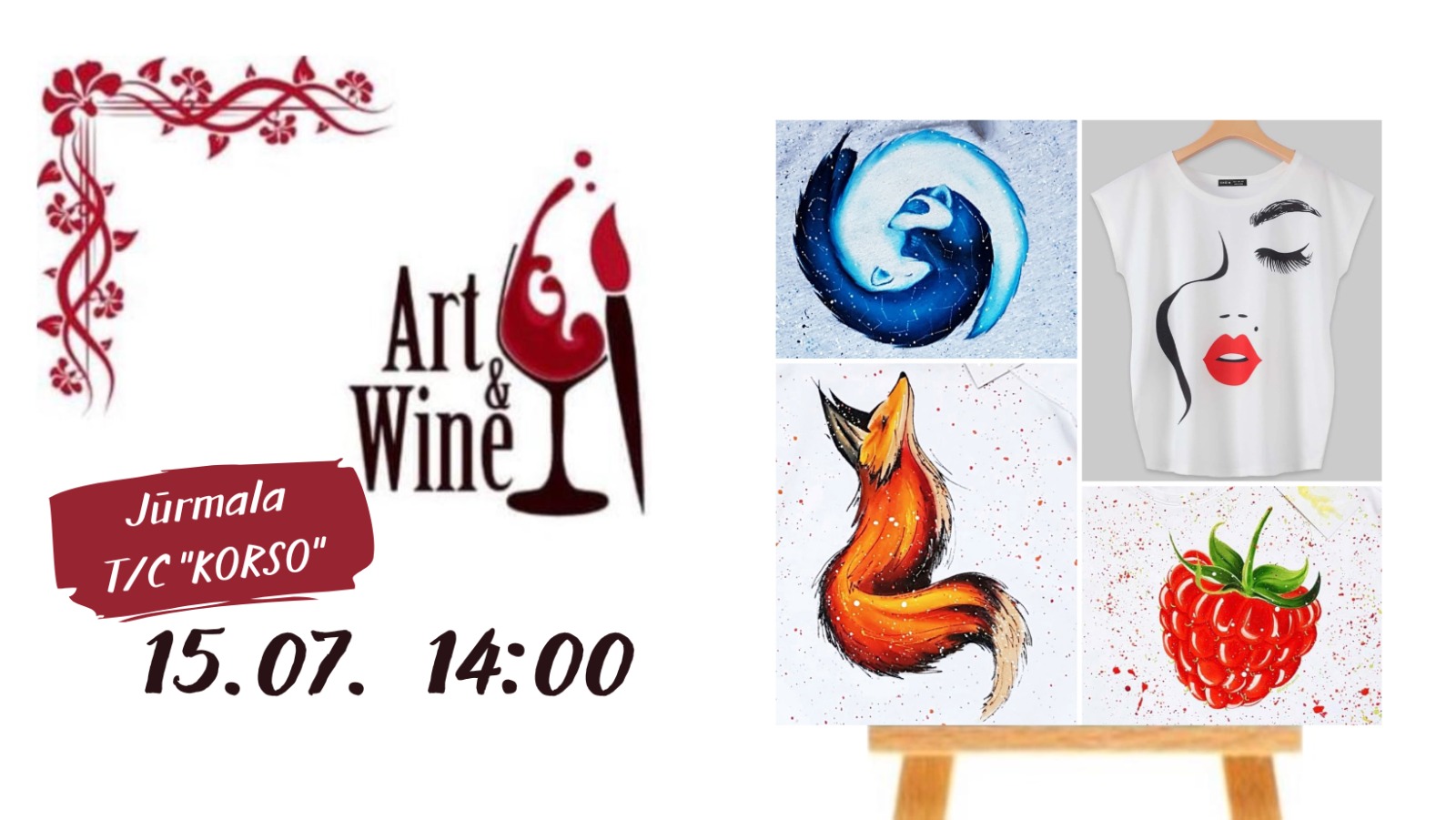 Uz vietas, studijā nav iespējams iegādāties T-kreklu. Nav nepieciešamas priekšzināšanas. Bez piedāvātajām gleznām, jūs varat izvēlēties jebkuru citu gleznu no mūsu kataloga. Iepriekšēja vietu rezervācija obligāta. Pasākums notiek: T/C "Korso", 2. stāvā. Jomas iela 37, Jūrmala. P.S. Mēs varam organizēt arī jūsu korporatīvo pasākumu, vecmeitu ballīti, dzimšanas dienu vai citus svētkus. Lai uzzinātu vairāk, zvaniet pa tālruni +371 22844069.