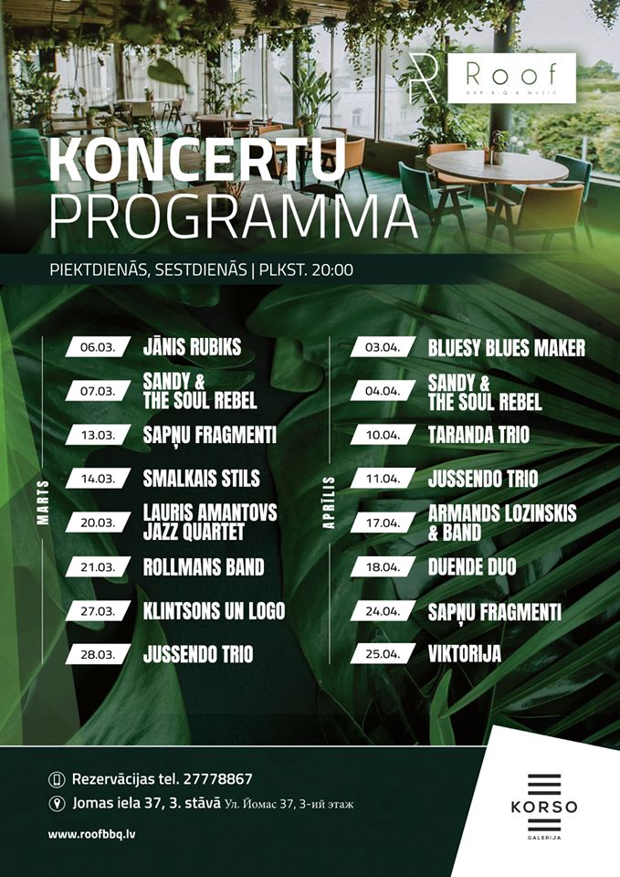 Tiekamies dzīvās mūzikas vakaros katru piektdienu un sestdienu ROOF Bar-B-Q & MUSIC restorānā!