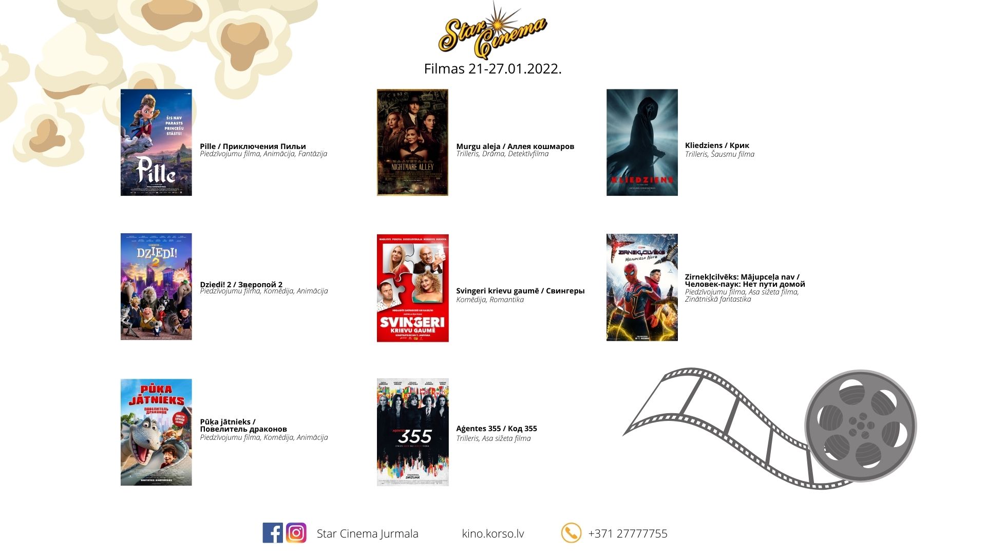 Jaunākais filmu repertuārs.