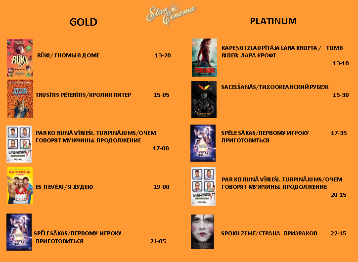 Filmu saraksts (30.03.) kinoteātrī Star Cinema Jūrmala.