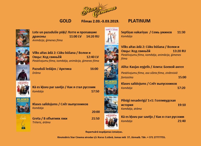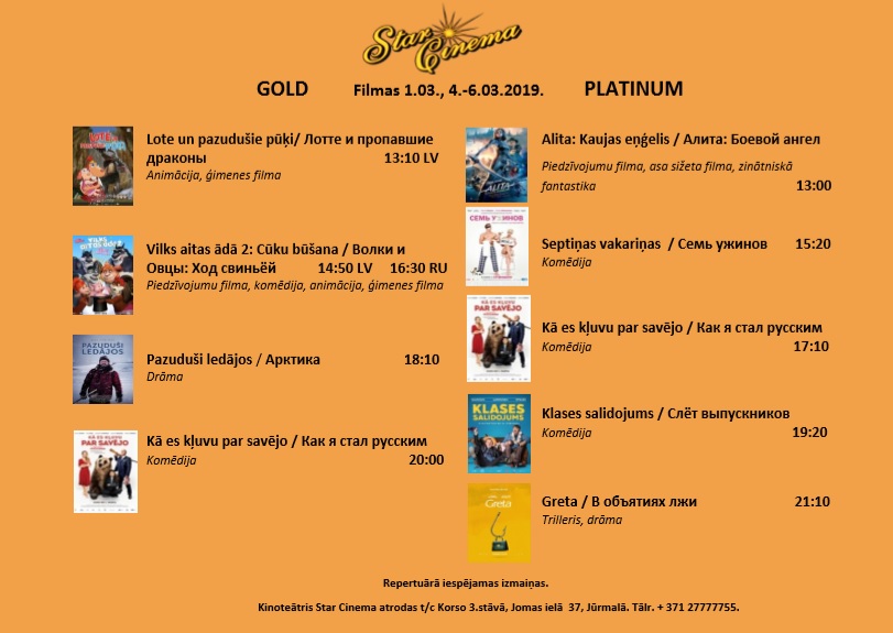 Filmu saraksts (1.03.-7.03.) kinoteātrī Star Cinema Jūrmala