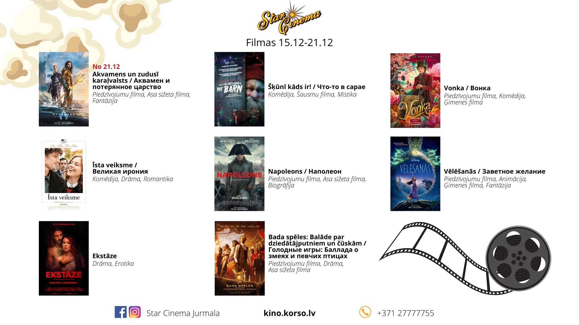 Jaunākais repertuārs kinoteātrī Star Cinema Jūrmala.