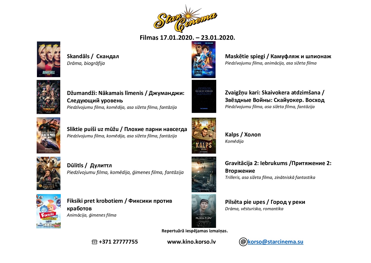 FILMAS (17.01.-23.01.) kinoteātrī Star Cinema Jūrmala. Plašāka informācija www.kino.korso.lv