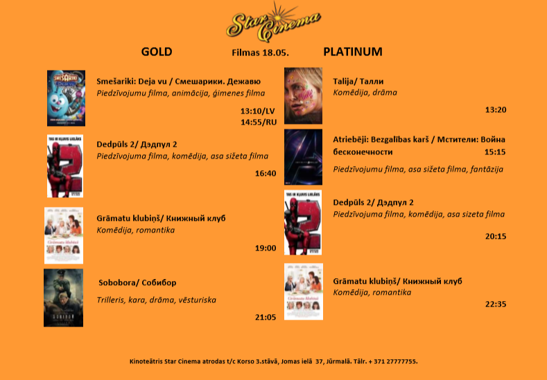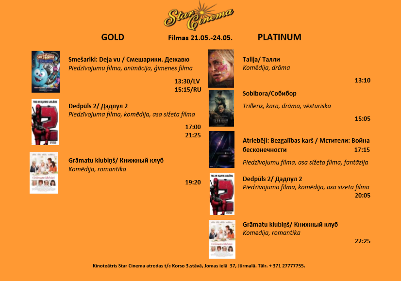 Star cinema Jūrmala 18.- 24.05.