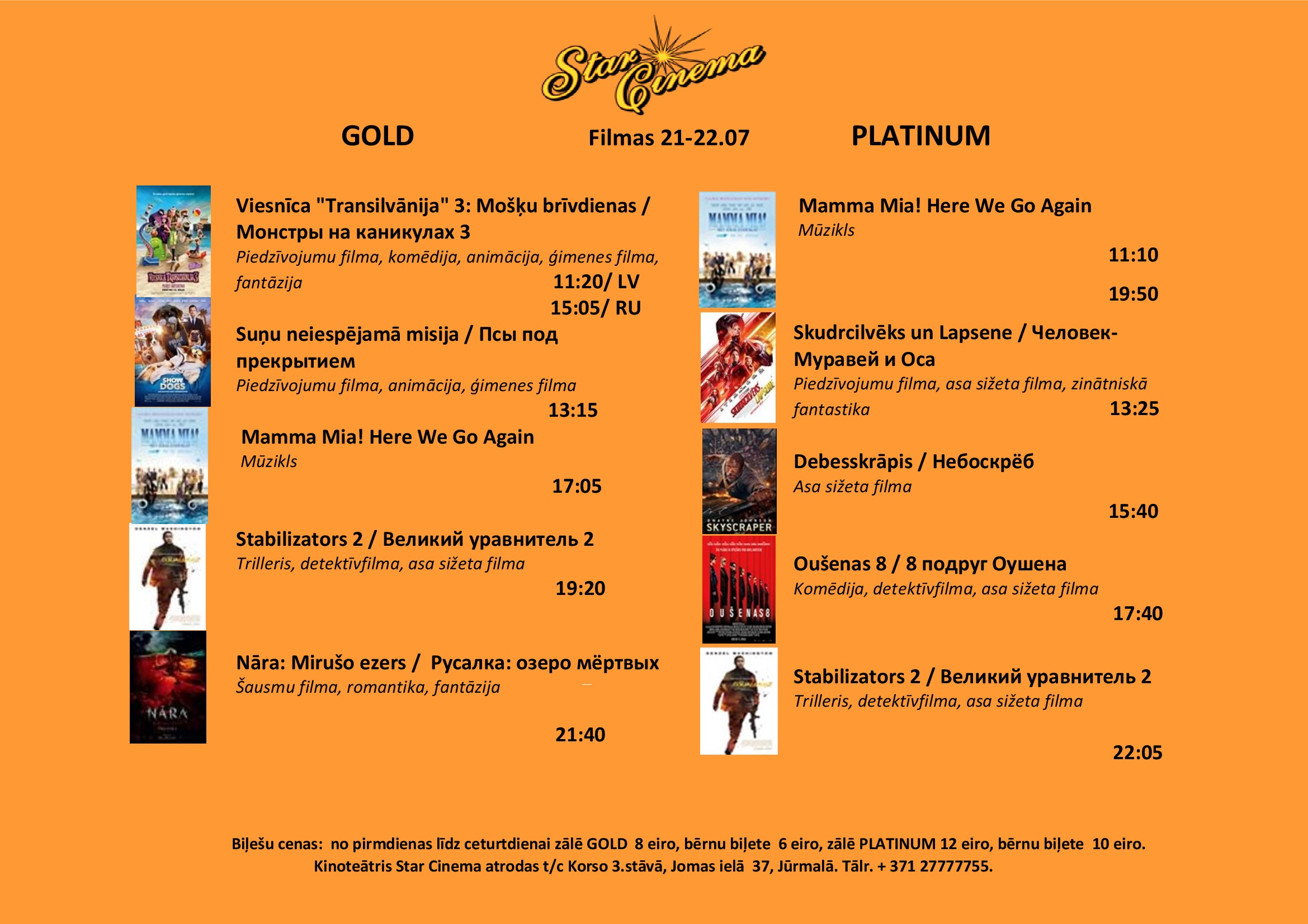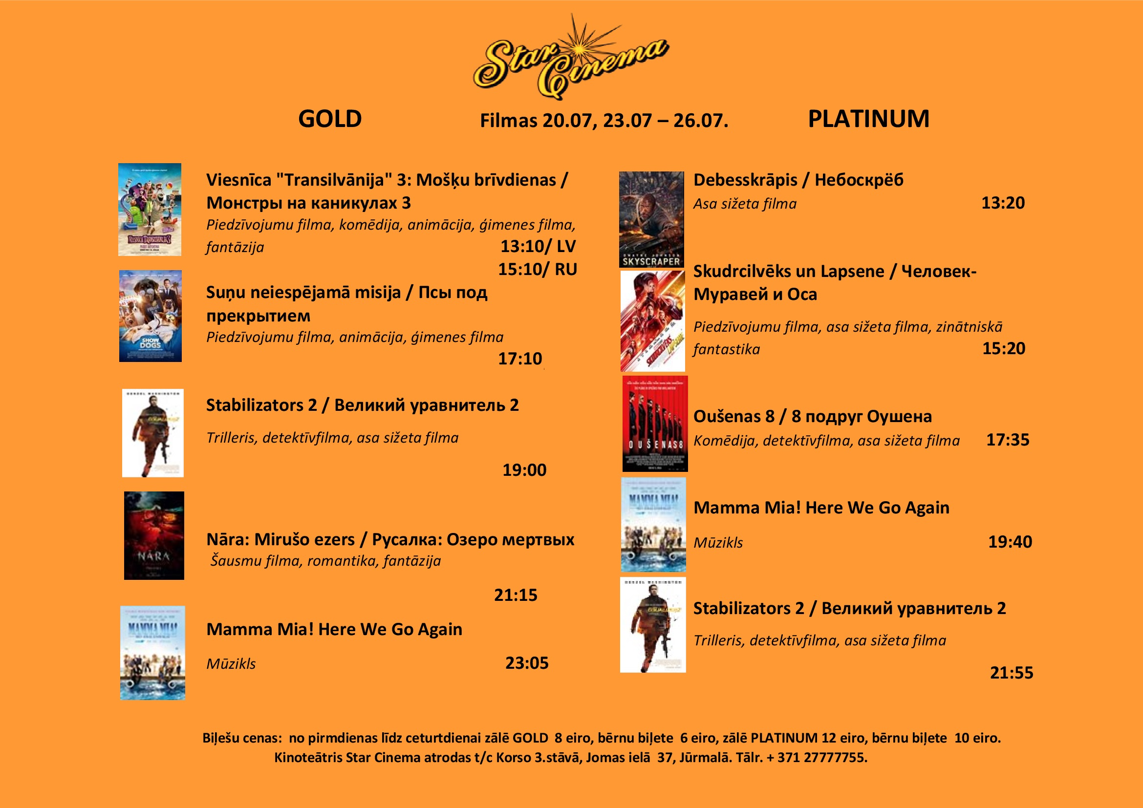 Filmu saraksts(20.07.- 26.07.) kinoteātrī Star Cinema Jūrmala