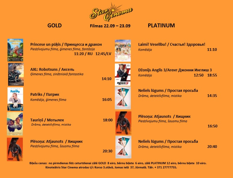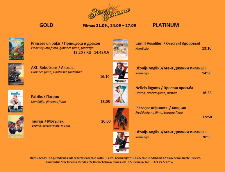 Star Cinema Jūrmala 21.- 27.09.