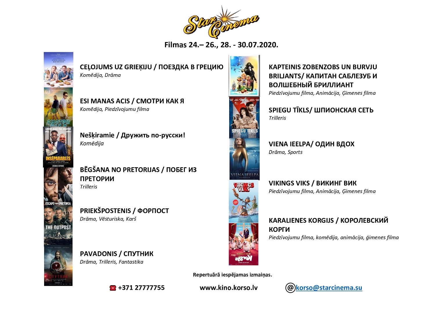 FILMAS (24. - 30.07.2020.) kinoteātrī Star Cinema Jūrmala. Plašāka informācija un biļetes kino mājas lapā ➡ www.kino.korso.lv