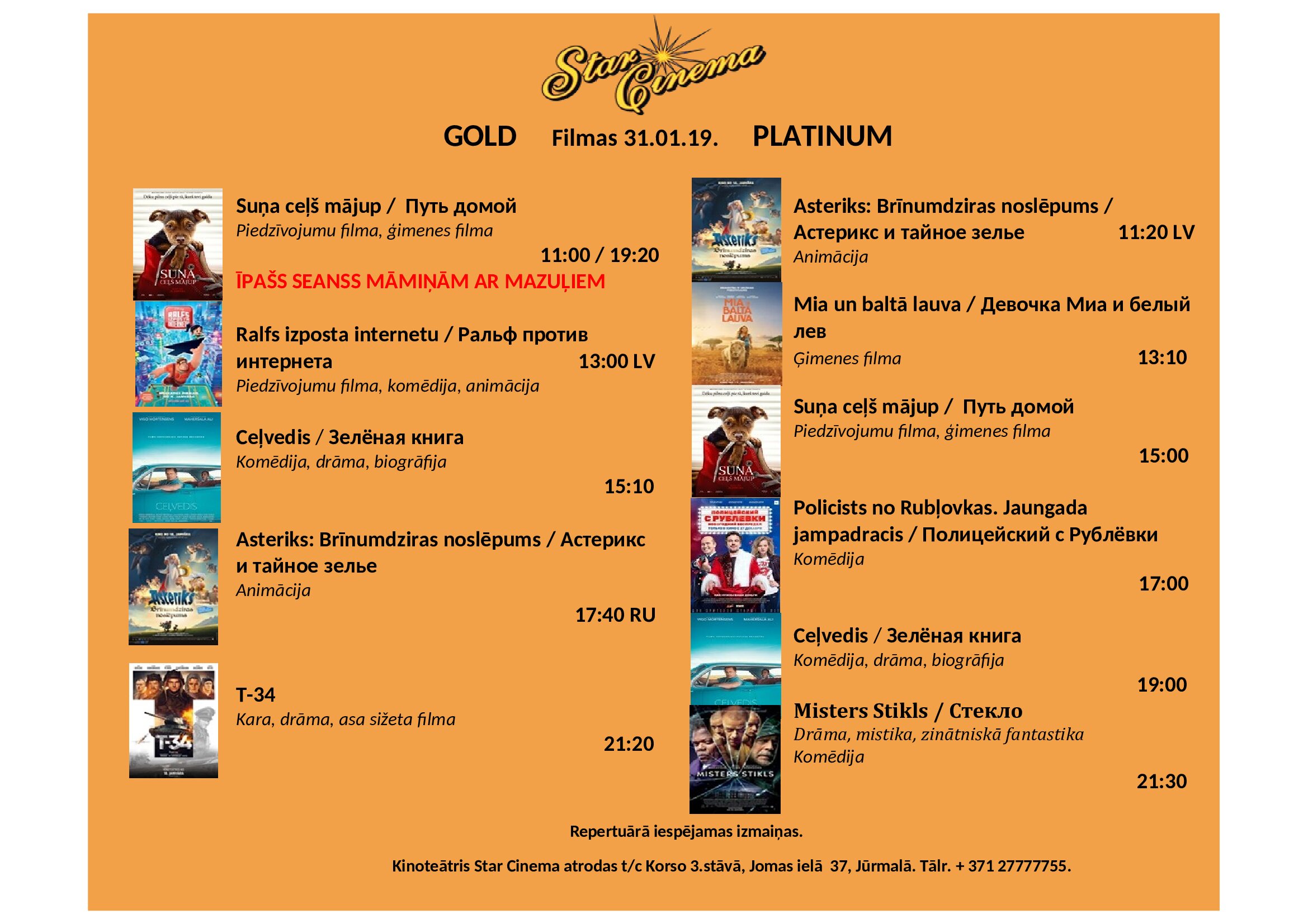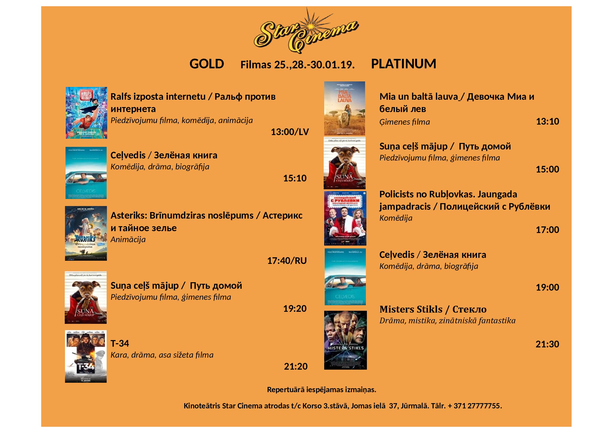 Filmu saraksts (25.01. - 31.01.) kinoteātrī Star Cinema Jūrmala