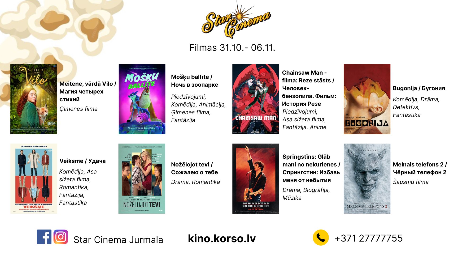 Jaunākas filmas un repertuārs kinoteātrī Star Cinema Jūrmala.
