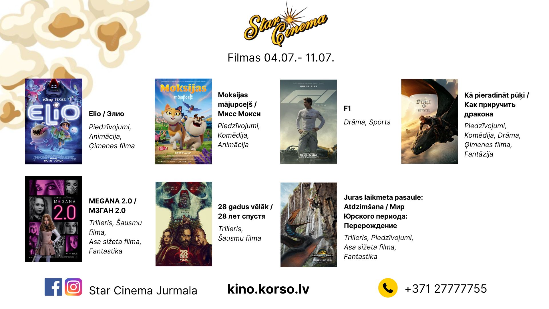 Jaunākās filmas un afiša kinoteātrī Star Cinema Jūrmala.