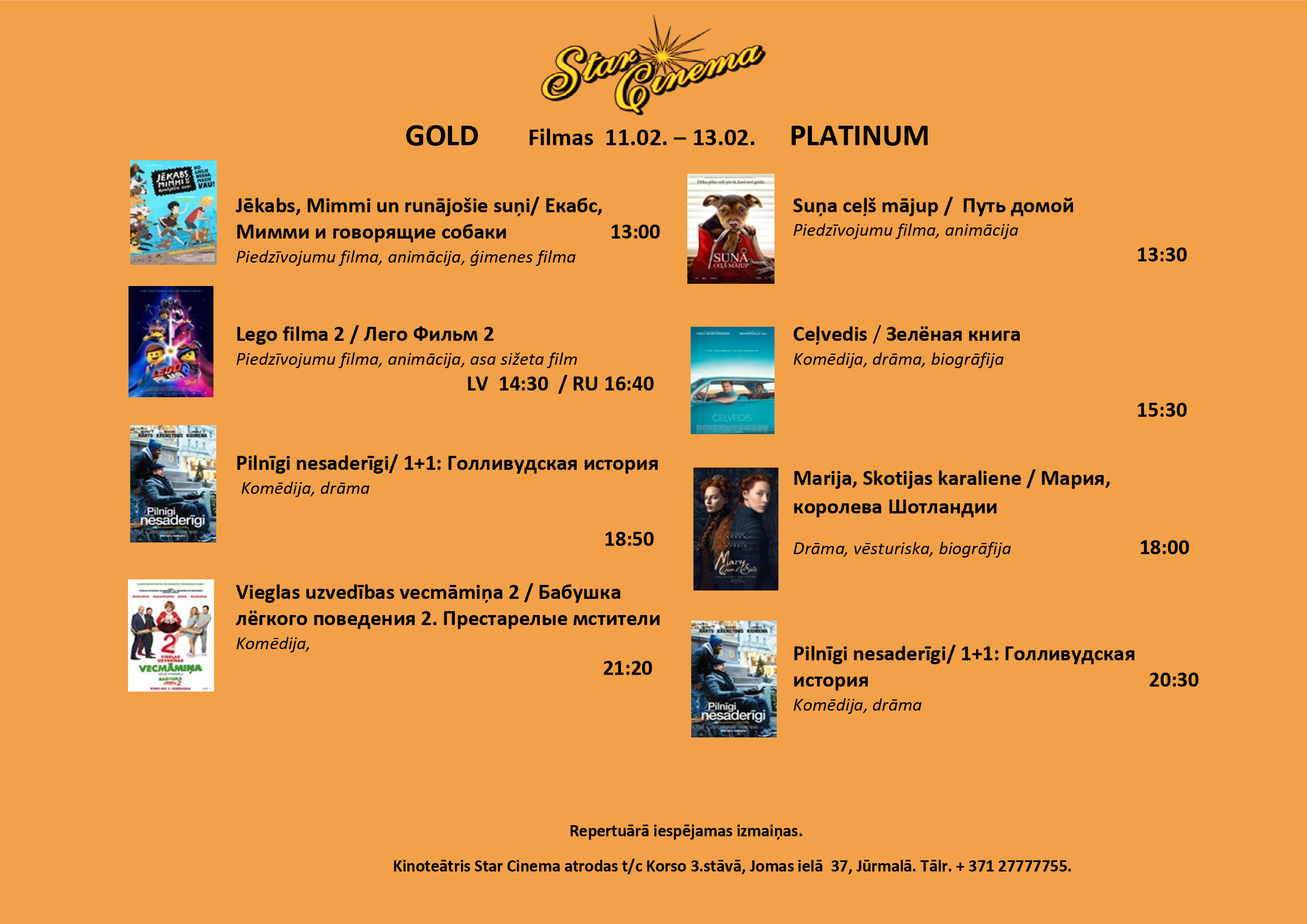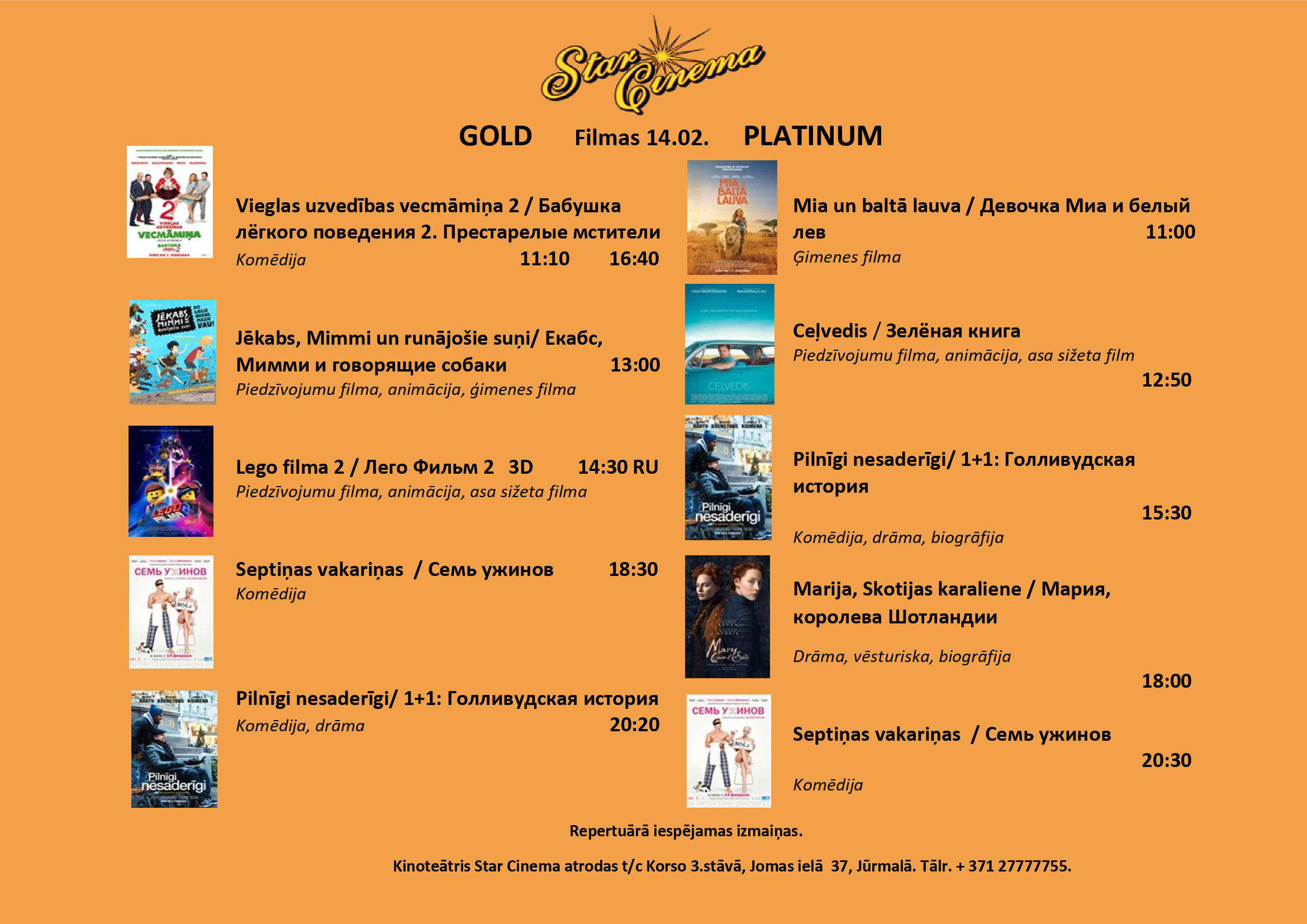 Filmu saraksts (11.02. - 14.02.2019) kinoteātrī Star Cinema Jūrmala