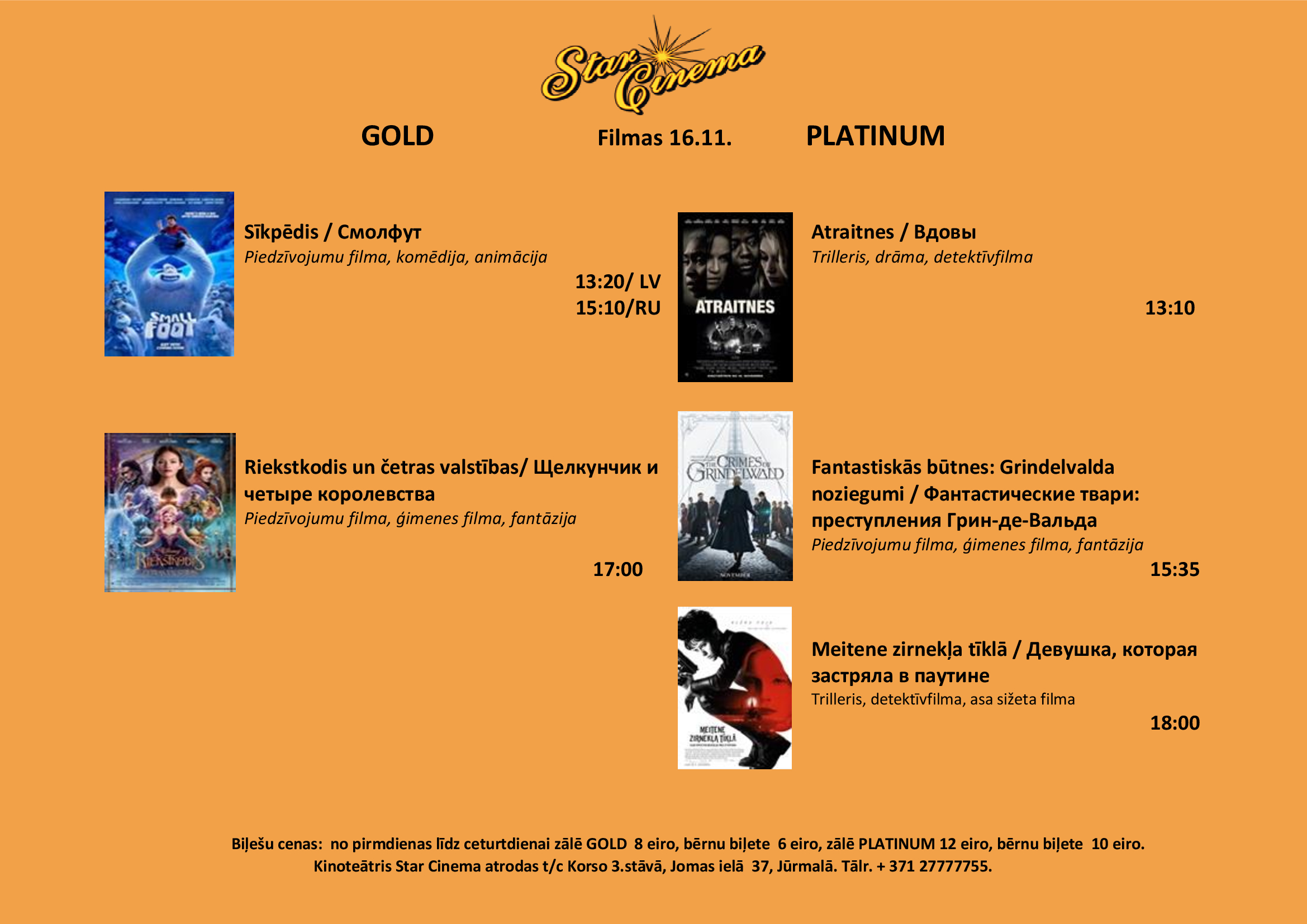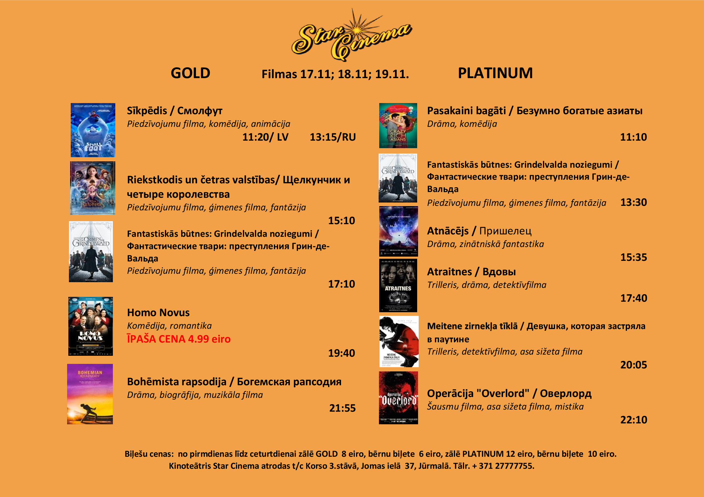 Filmu saraksts (9.11.-15.11.) kinoteātrī Star Cinema Jūrmala