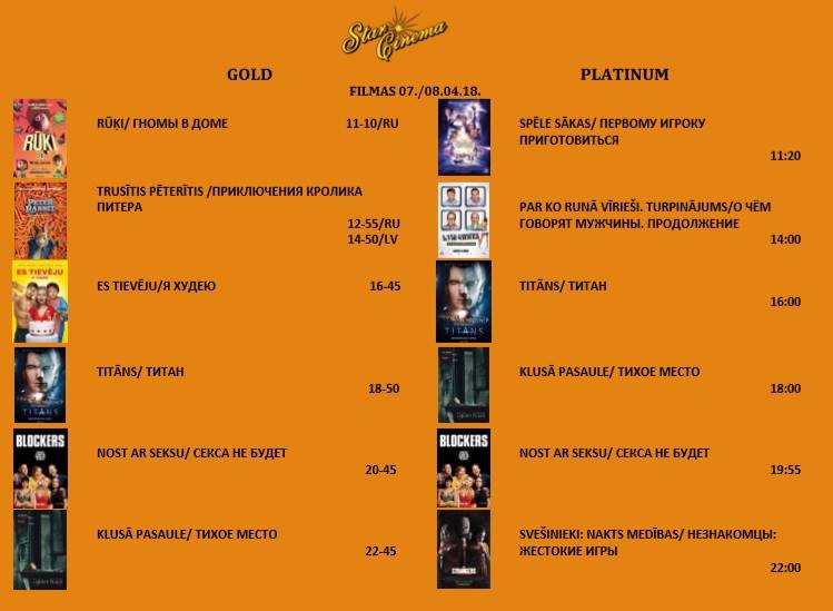 Filmu saraksts(7.-8.04.) kinoteātrī Star Cinema Jūrmala