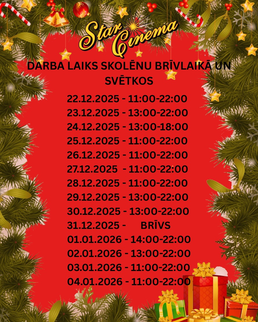 Star Cinema Jūrmala darba laiki svētku dienās 2025/26