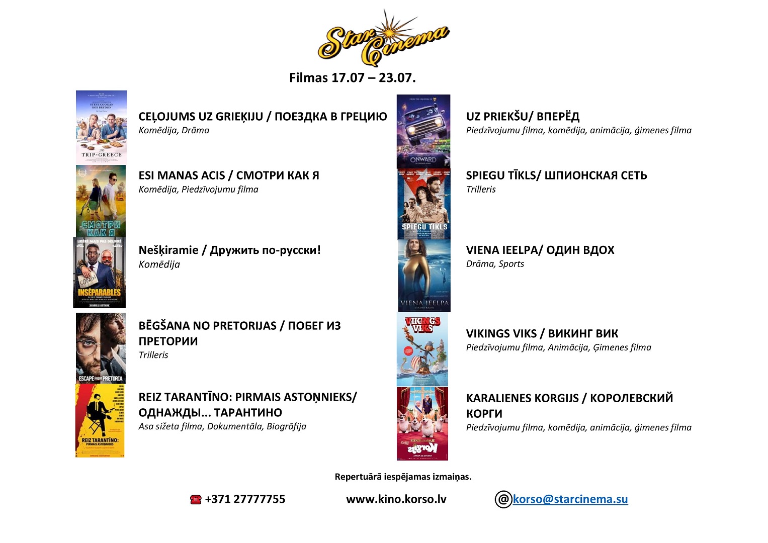 FILMAS (17. - 23.07.2020.) kinoteātrī Star Cinema Jūrmala. Plašāka informācija un biļetes kino mājas lapā ➡ www.kino.korso.lv