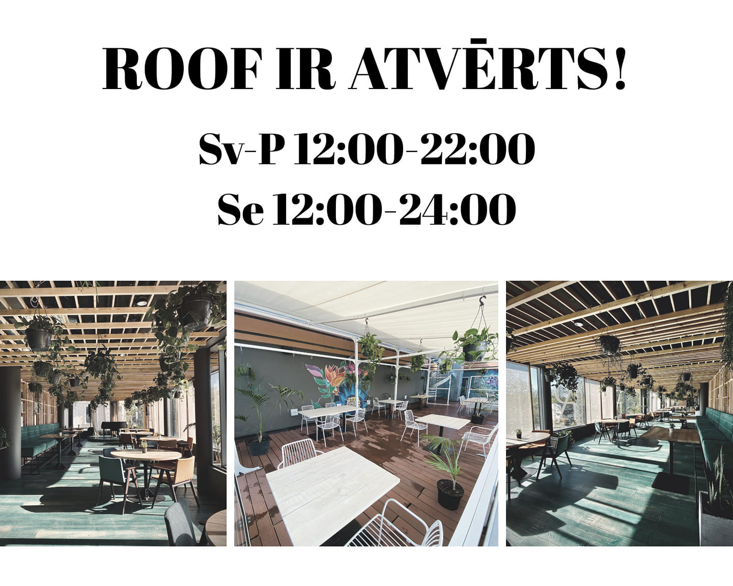 Vēlamies jūs iepriecināt, ka no šodienas, 21.maija restorāns ROOF Bar-B-Q & MUSIC atsāk savu darbību. Pieejamas arī divas atvērtās terases - trešajā un ceturtajā stāvā. Raksti un piesaki savu izlaidumu, kāzas, dzimšanas dienas svinības vai vecmeitu ballīti jau tagad. ROOF 4 YOU!