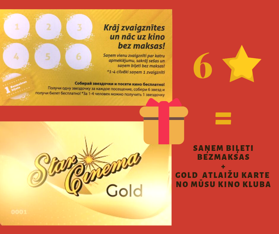 Krāj zvaigznītes un nāc uz kino bez maksas + DĀVANĀ GOLD ATLAIŽU KARTE NO Star Cinema Jūrmala KINO KLUBA!