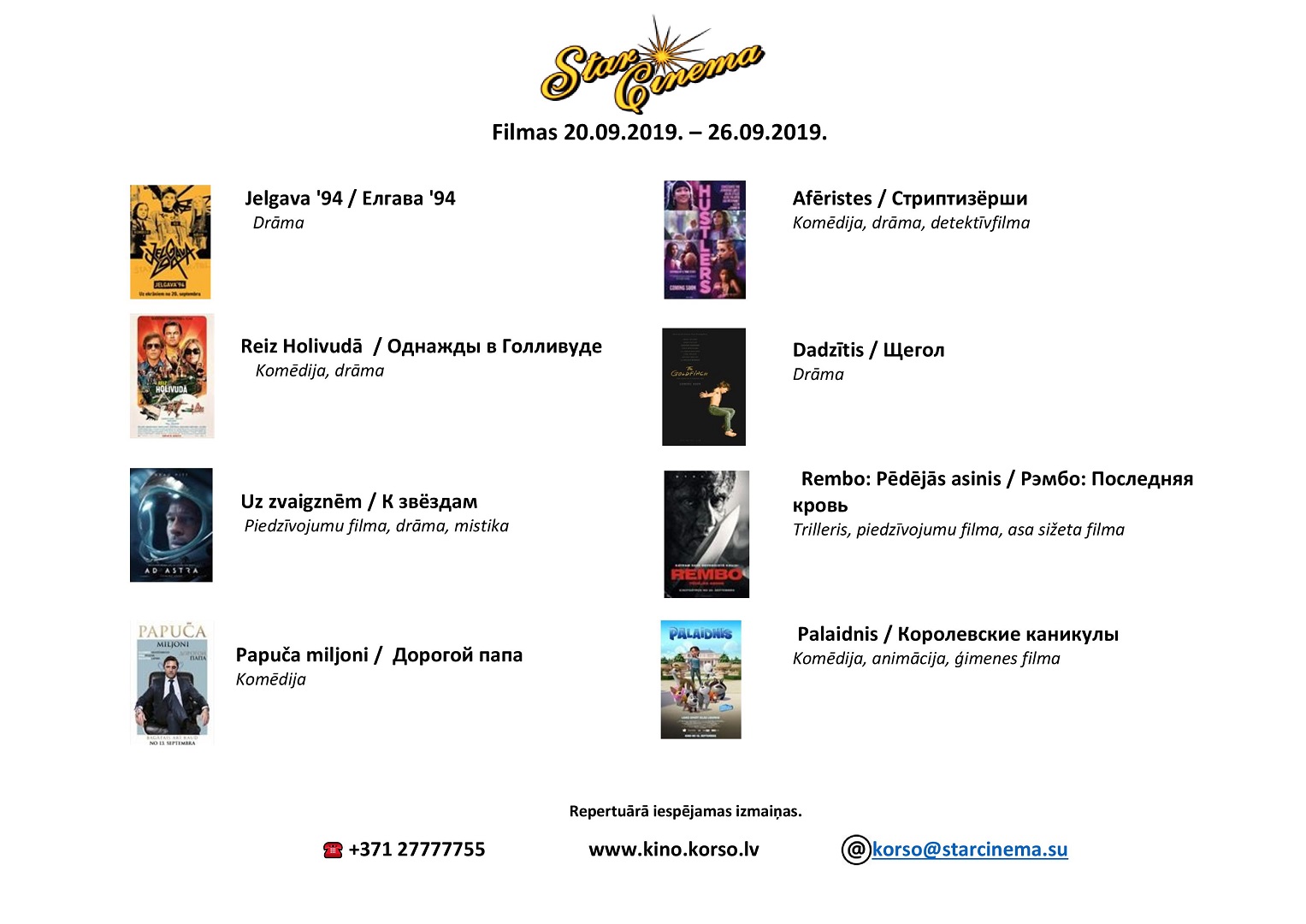 FILMAS (20.09.-26.09.) kinoteātrī Star Cinema Jūrmala. Plašāka informācij par filmām, kā arī biļešu iegāde ➡ www.kino.korso.lv