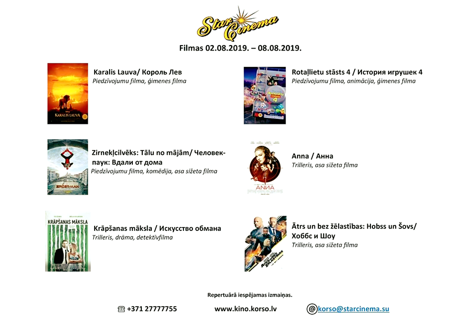 FILMAS (2.08.-15.08.) kinoteātrī Star Cinema Jūrmala.