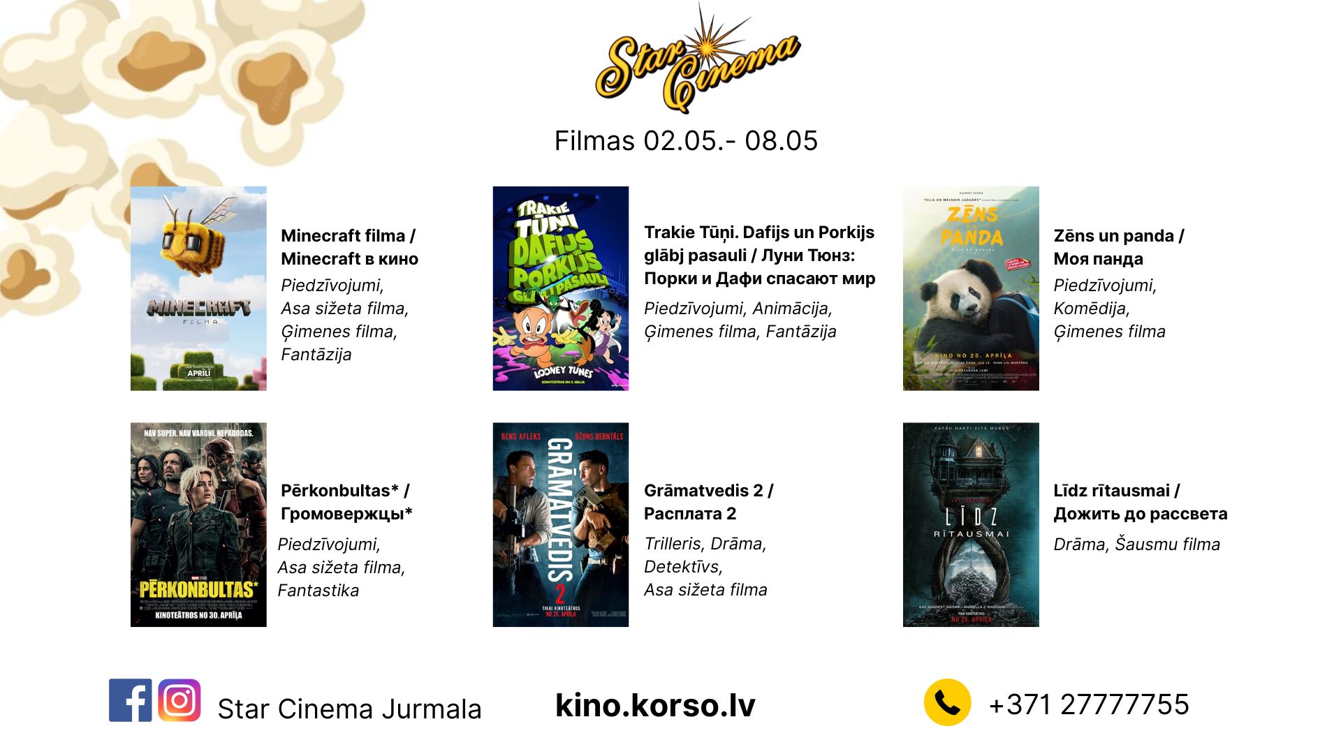 Jaunākais repertuārs un filmas kinoteātrī Star Cinema Jūrmala.