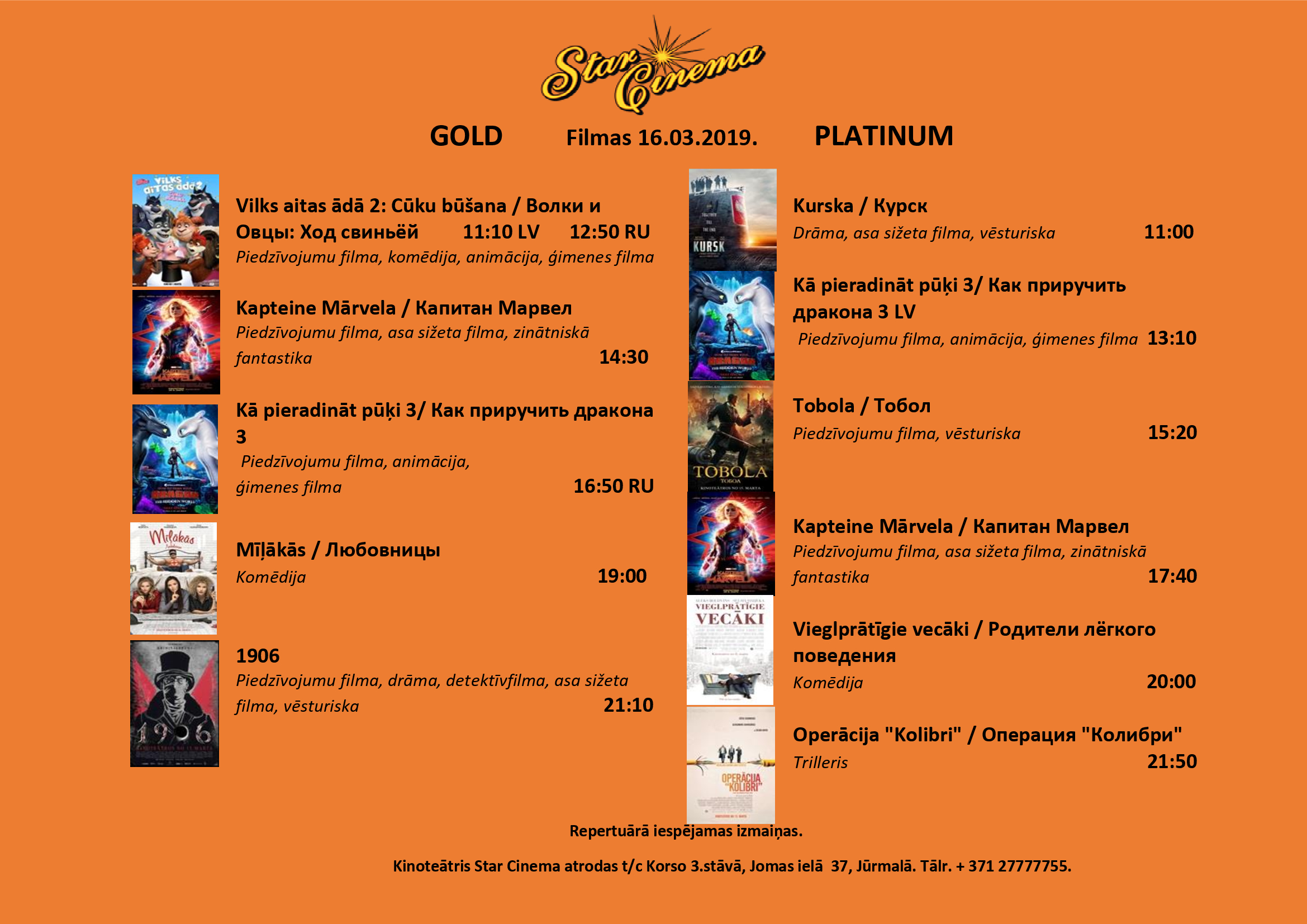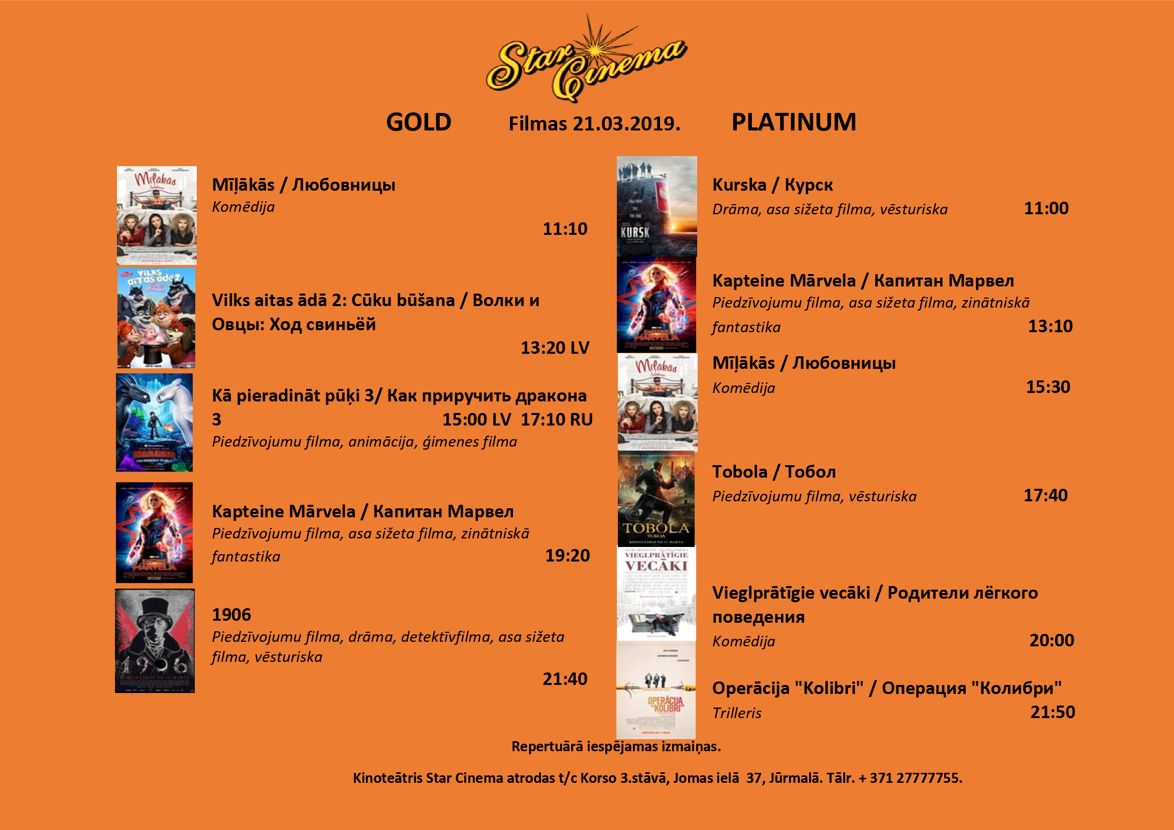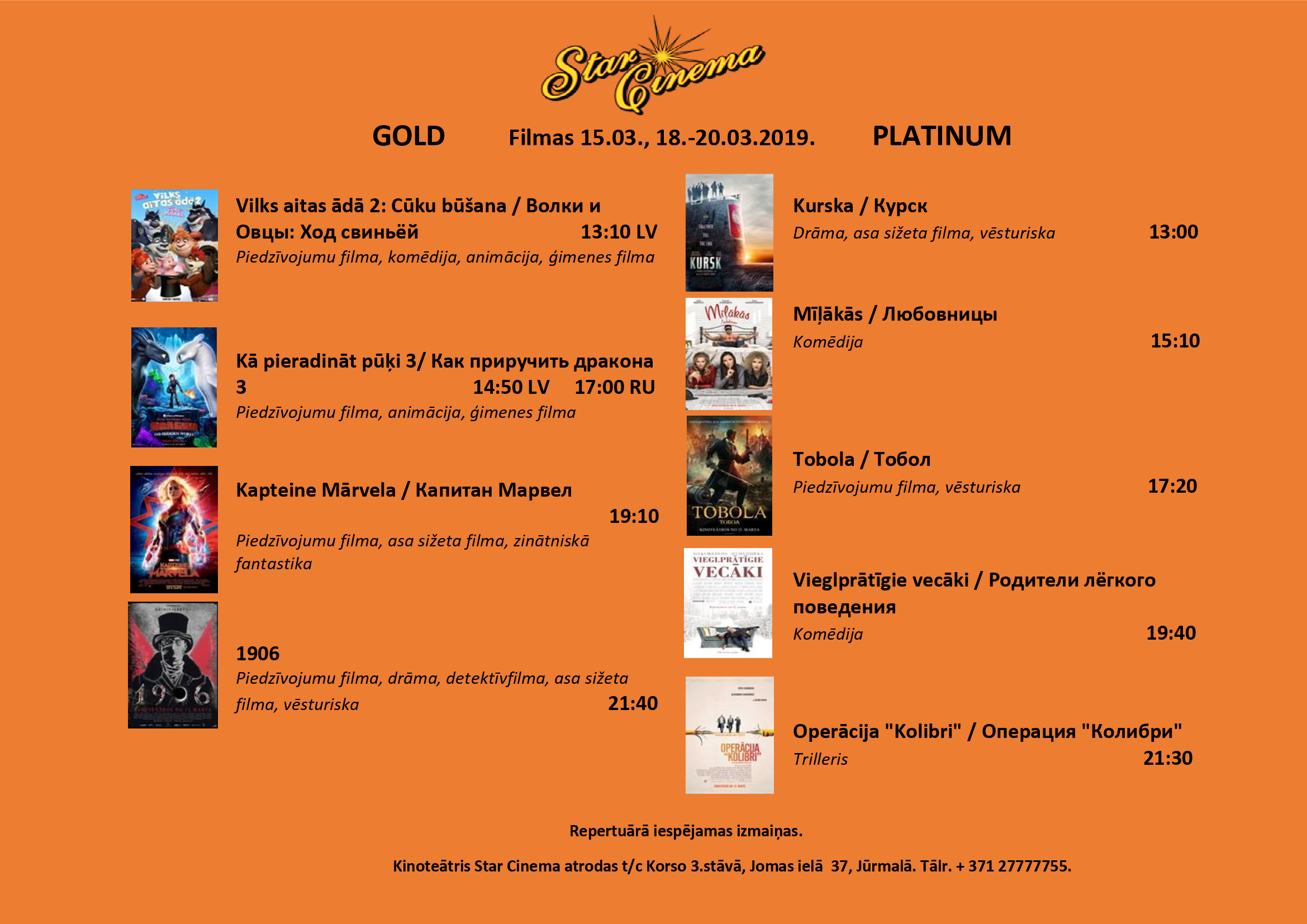 Filmu saraksts (15.03.-21.03.) kinoteātrī Star Cinema Jūrmala