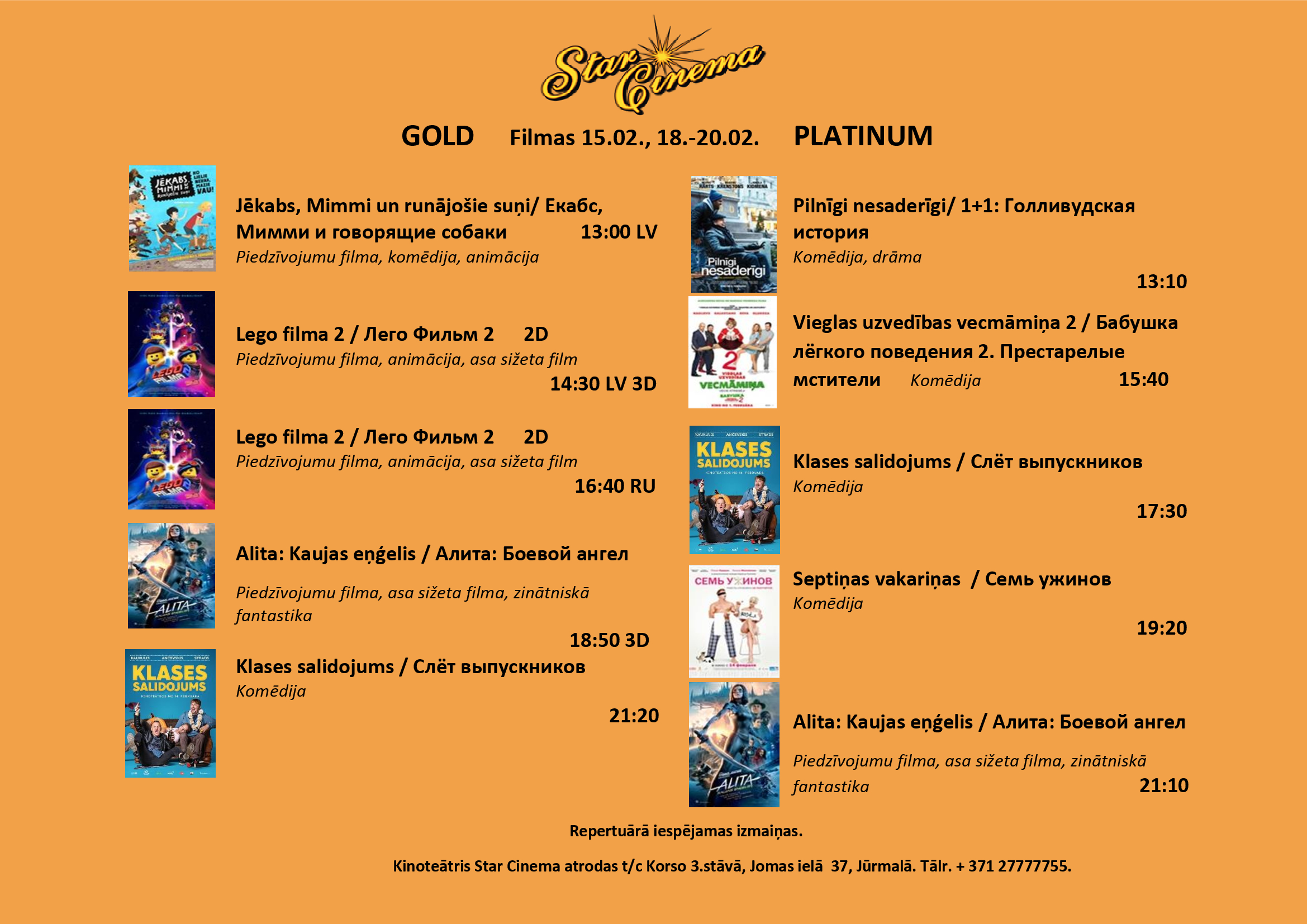 Filmu saraksts (15.02.-21.02.) kinoteātrī Star Cinema Jūrmala