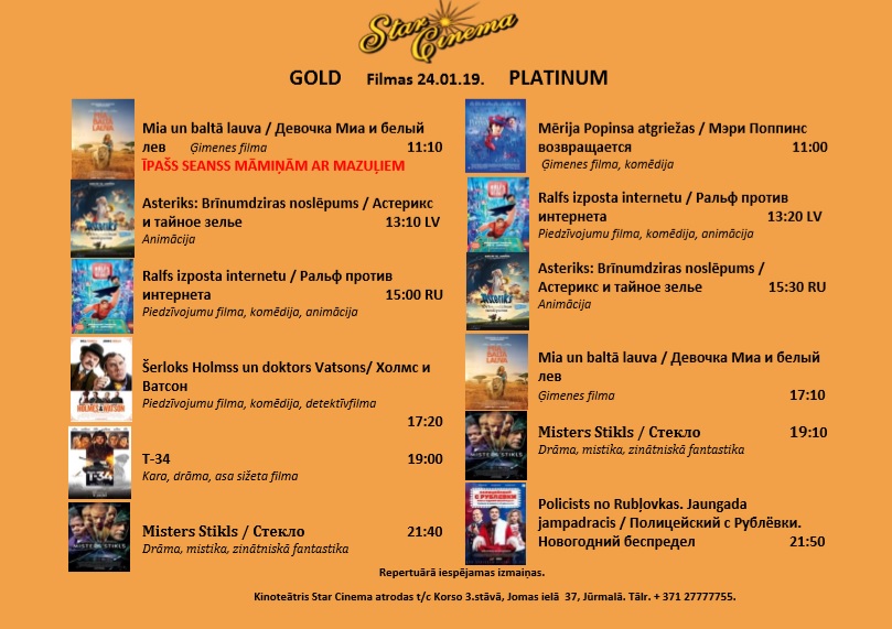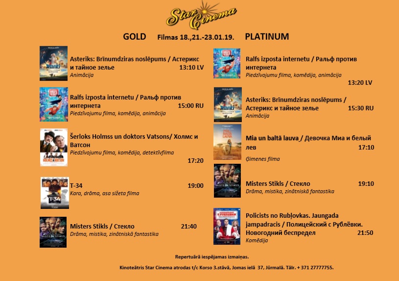 Filmu saraksts (18.01.-24.01.) kinoteātrī Star Cinema Jūrmala