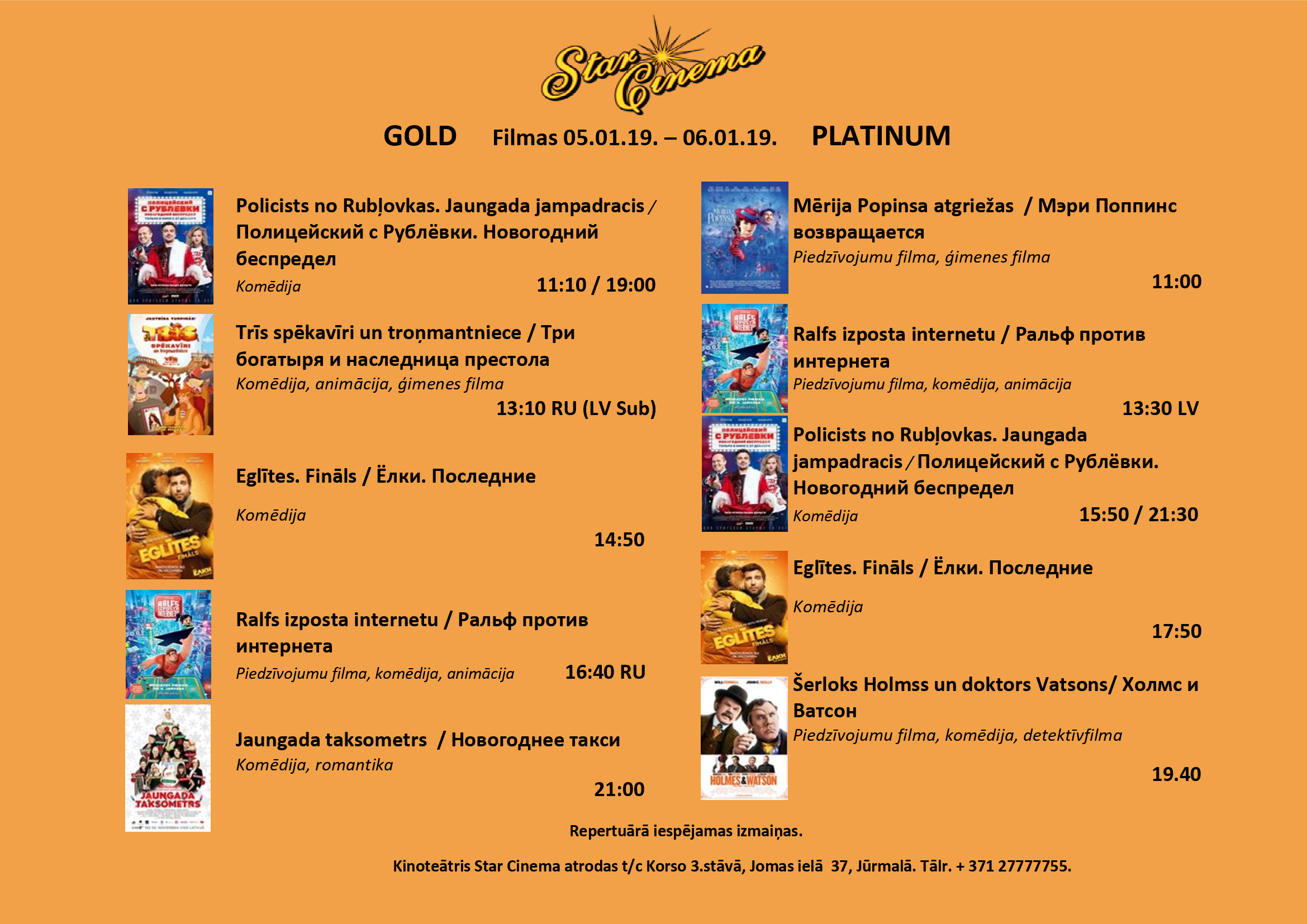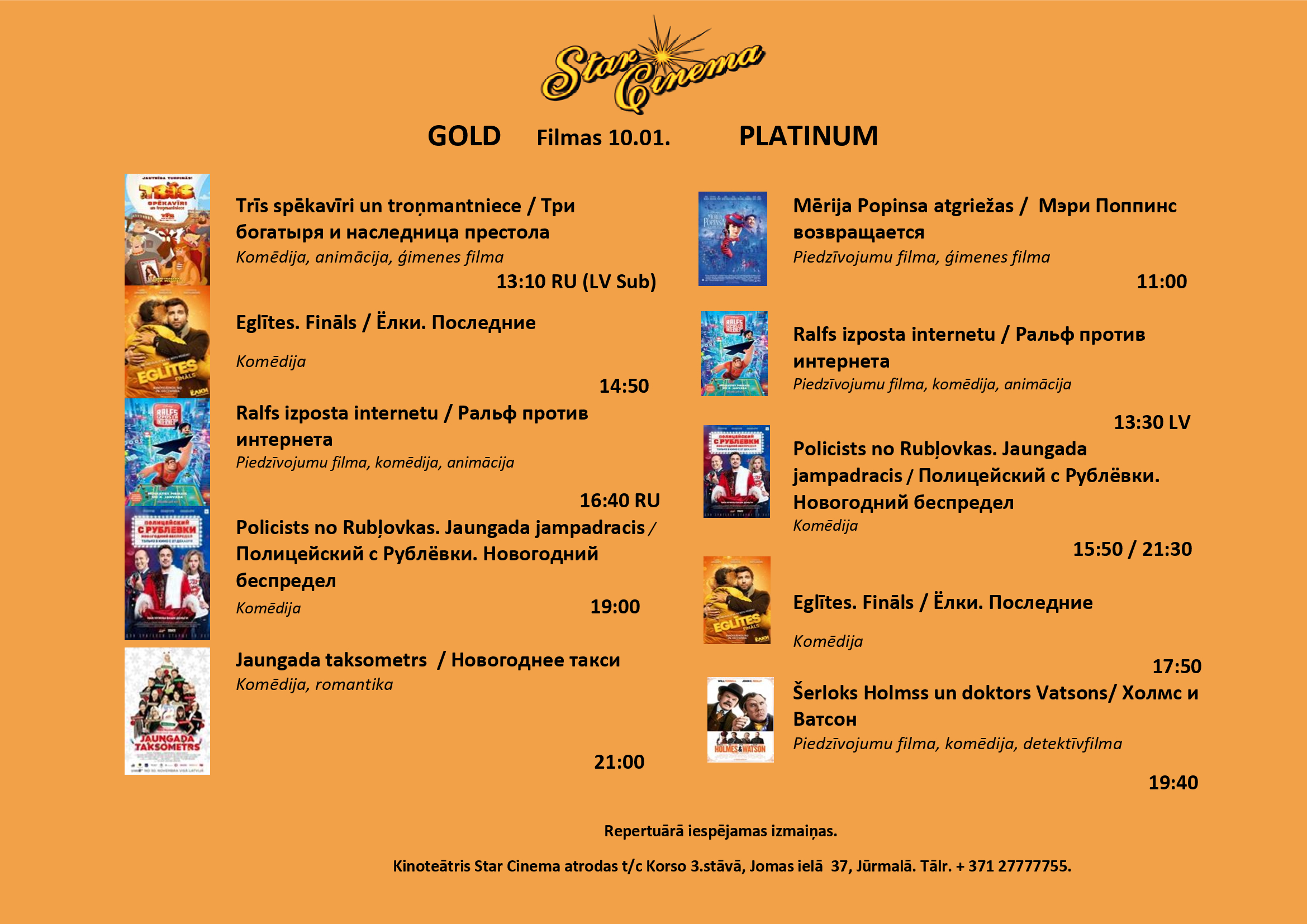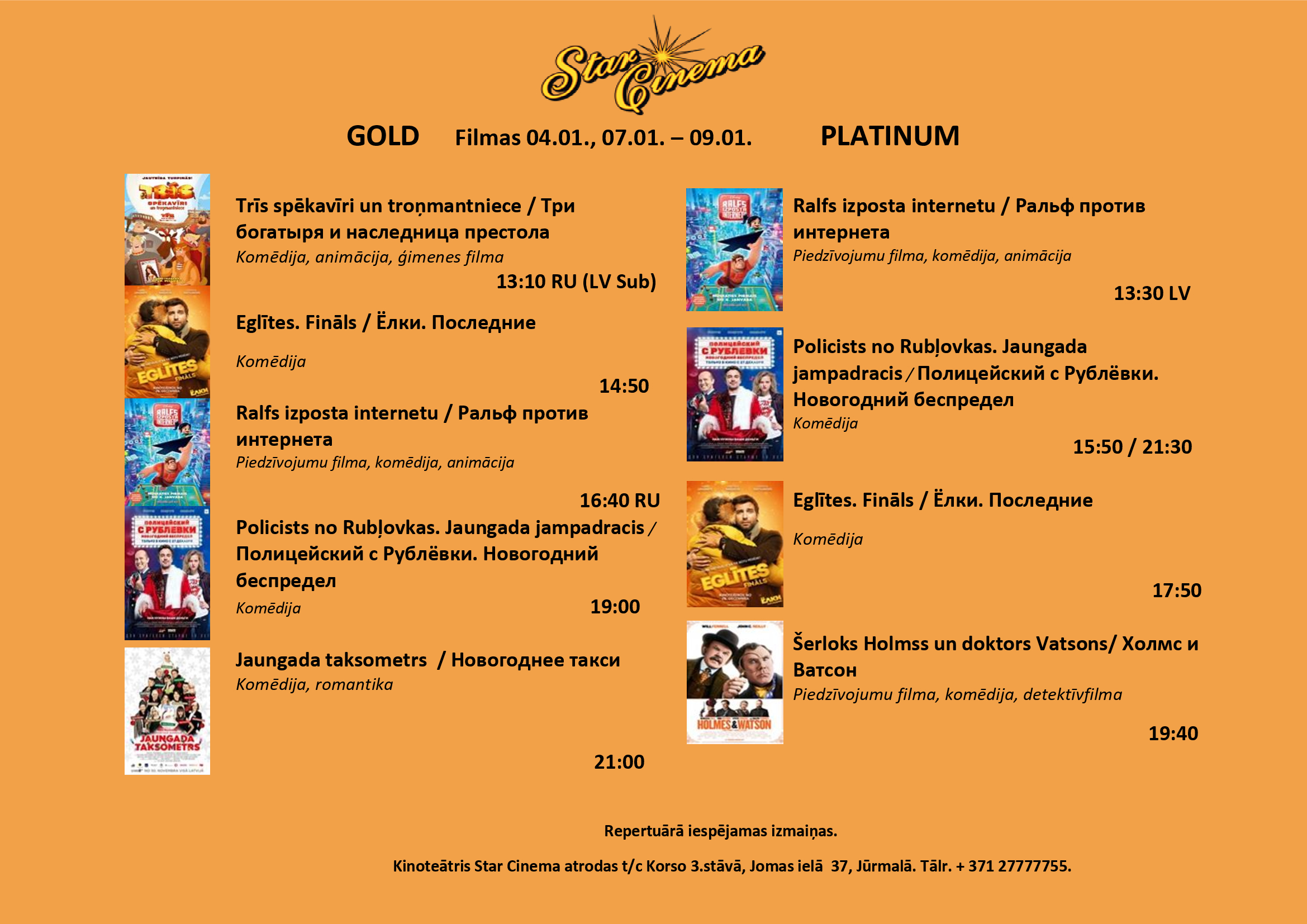 Filmu saraksts (04.01.-10.01.) kinoteātrī Star Cinema Jūrmala