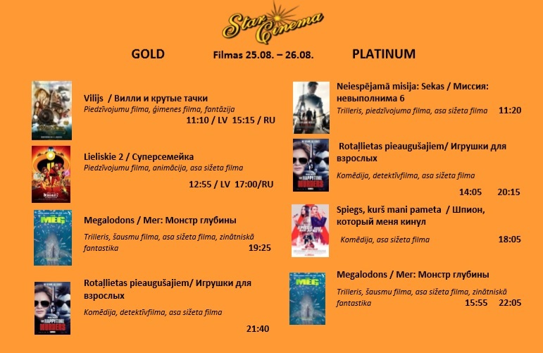 Filmu saraksts (24.-30.08.) kinoteātrī Star Cinema Jūrmala.