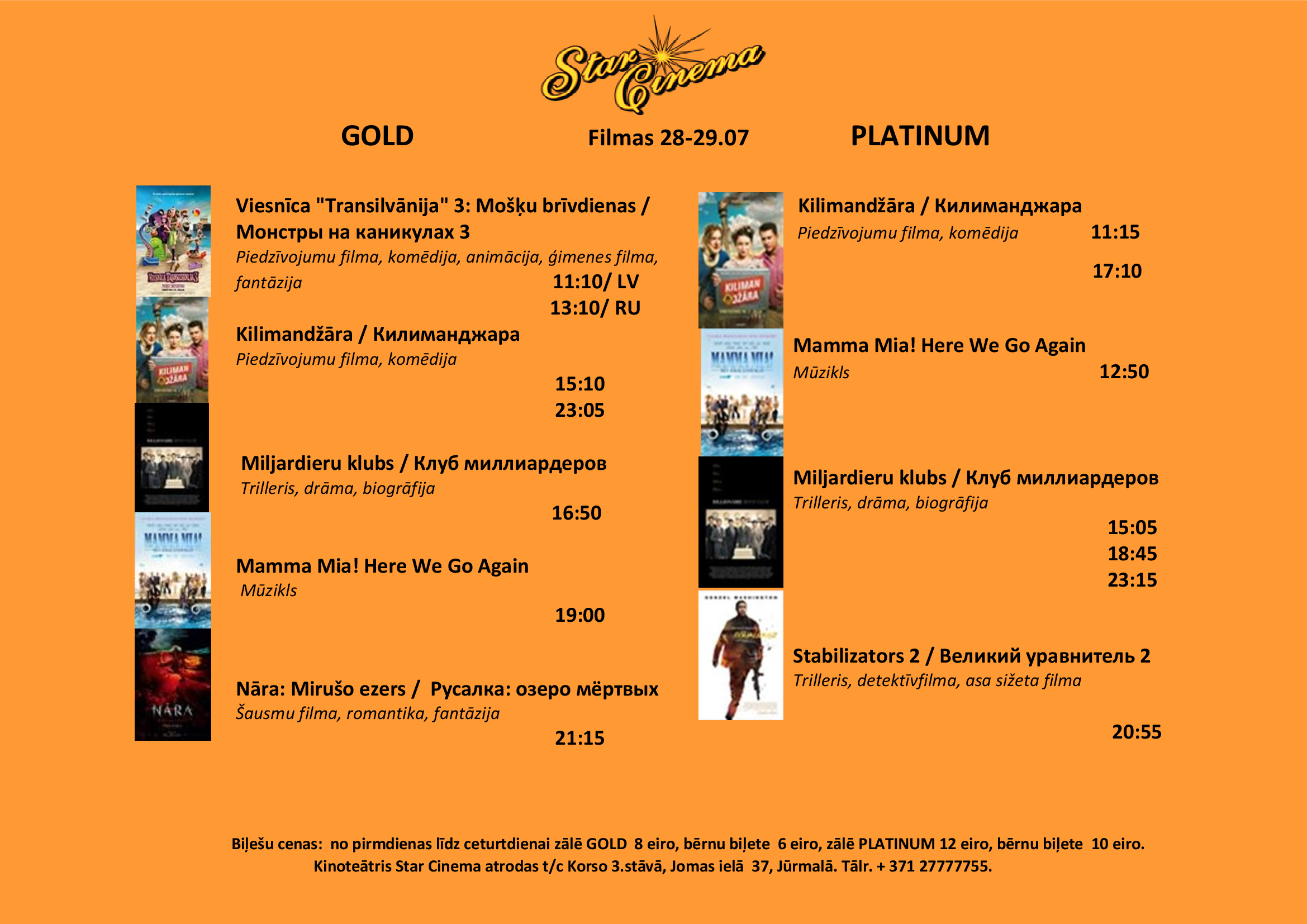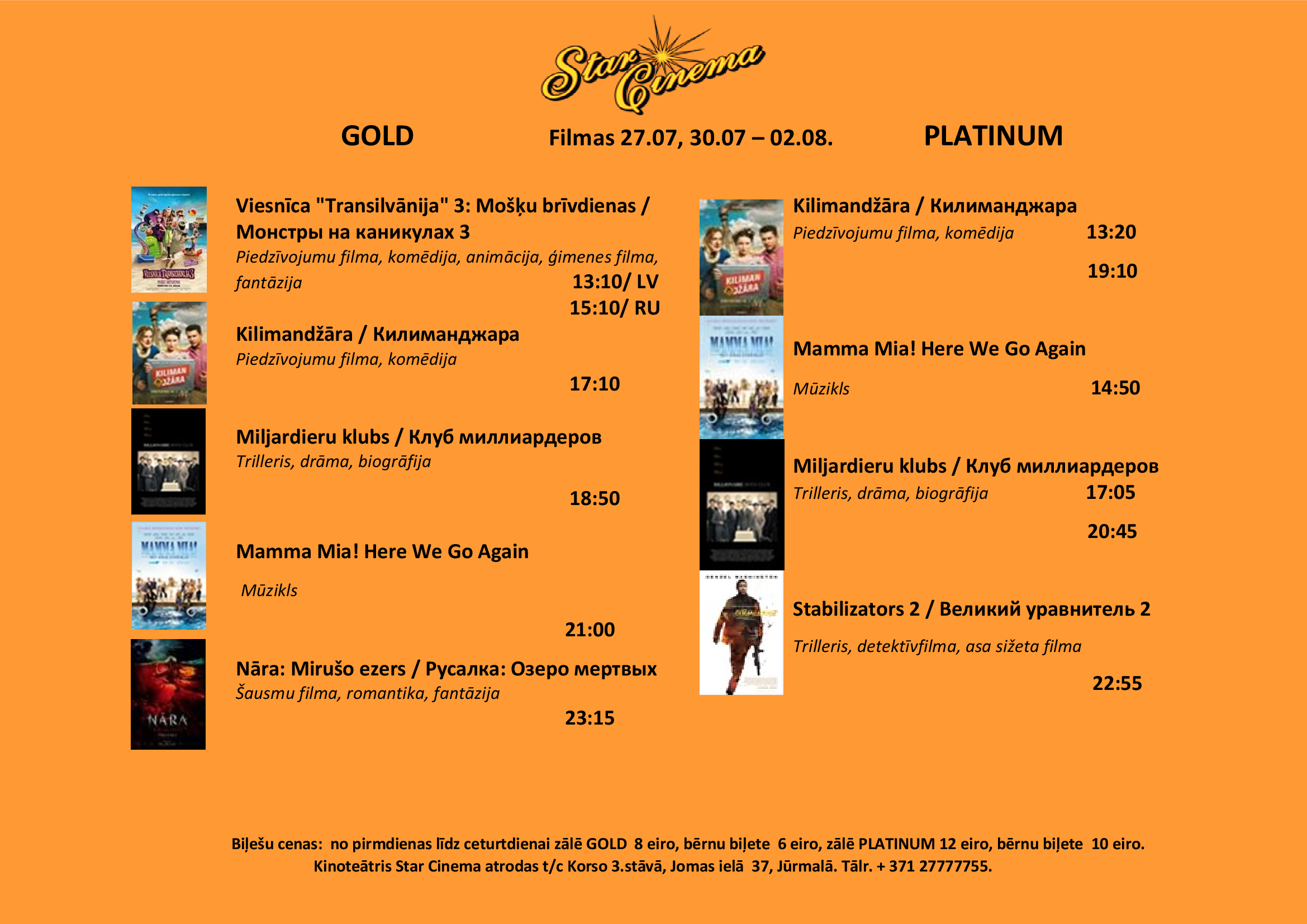 Filmu saraksts(20.07.- 26.07.) kinoteātrī Star Cinema Jūrmala