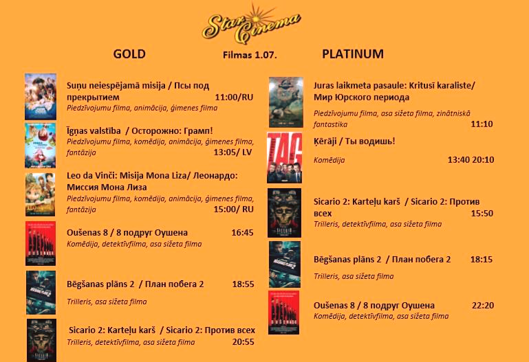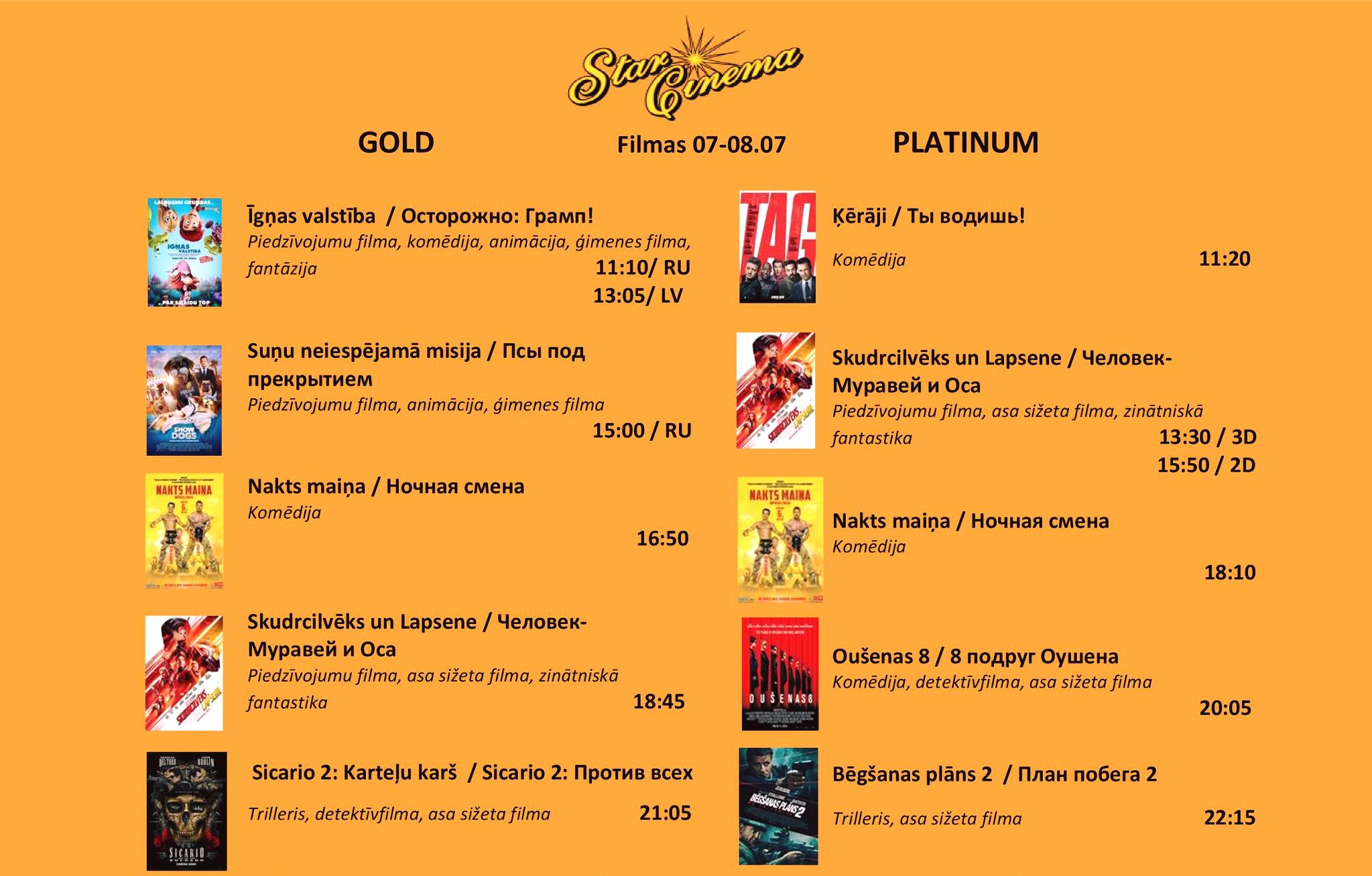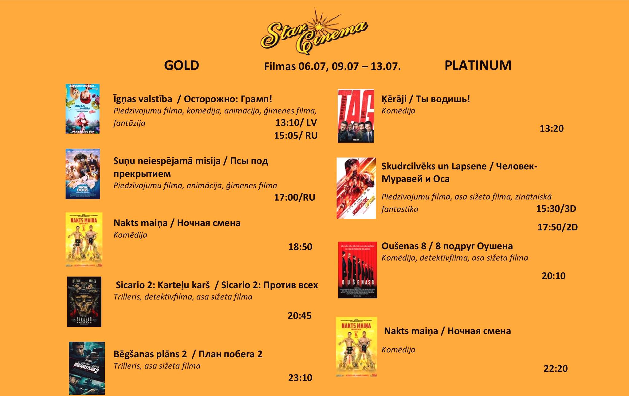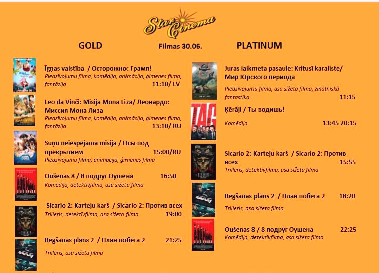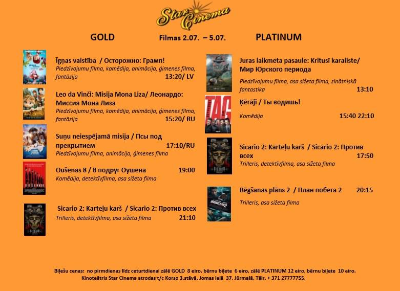 Filmu saraksts(22.06.-28.06) kinoteātrī Star Cinema Jūrmala.