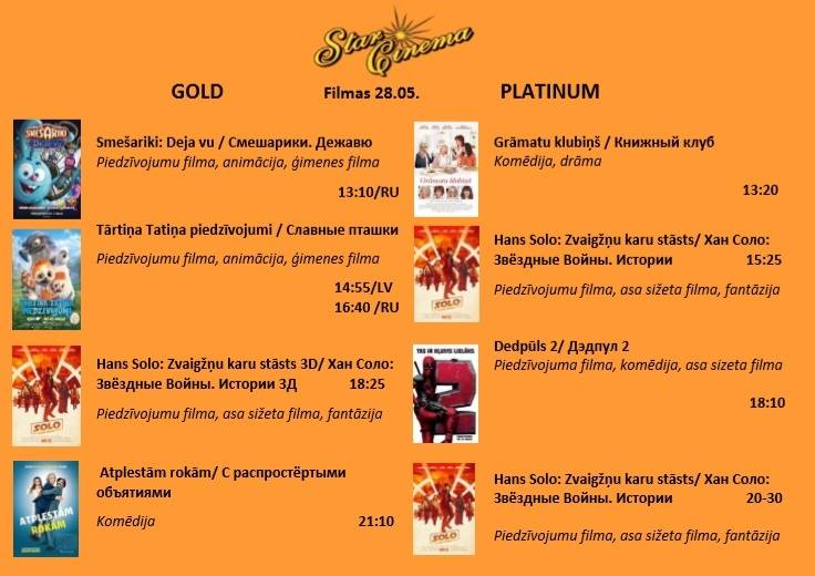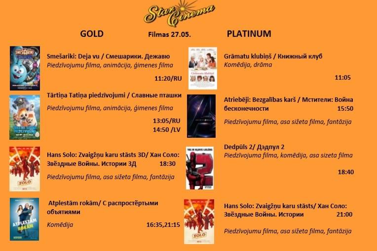 Filmu saraksts (18.05.-24.05.) kinoteātrī Star Cinema Jūrmala