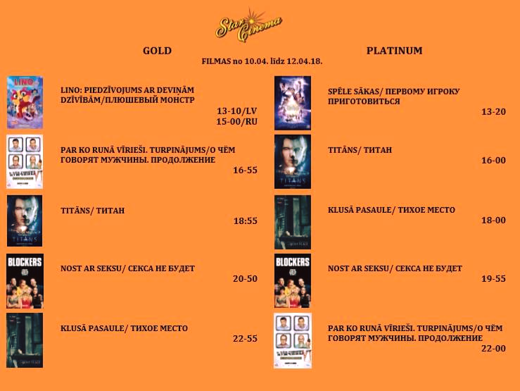 Filmu saraksts(10.-12.04.) kinoteātrī Star Cinema Jūrmala
