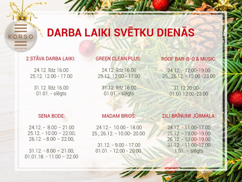 Lūdzam, Jūs, pievērst uzmanību galerijas Korso veikalu, restorāna, bērnu izklaides un izglītības centra Zili brīnumi darba laikiem svētku dienās.