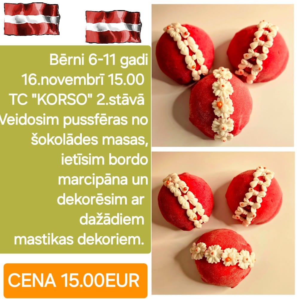 Lai skaisti un garšīgi nosvinēt Latvijas Dzimšanas Dienu aicinu BĒRNUS UN PUSAUDŽUS UZ SARKAN BALTI SARKANĀM KONDITOREJAS MEISTARKLASĒM!