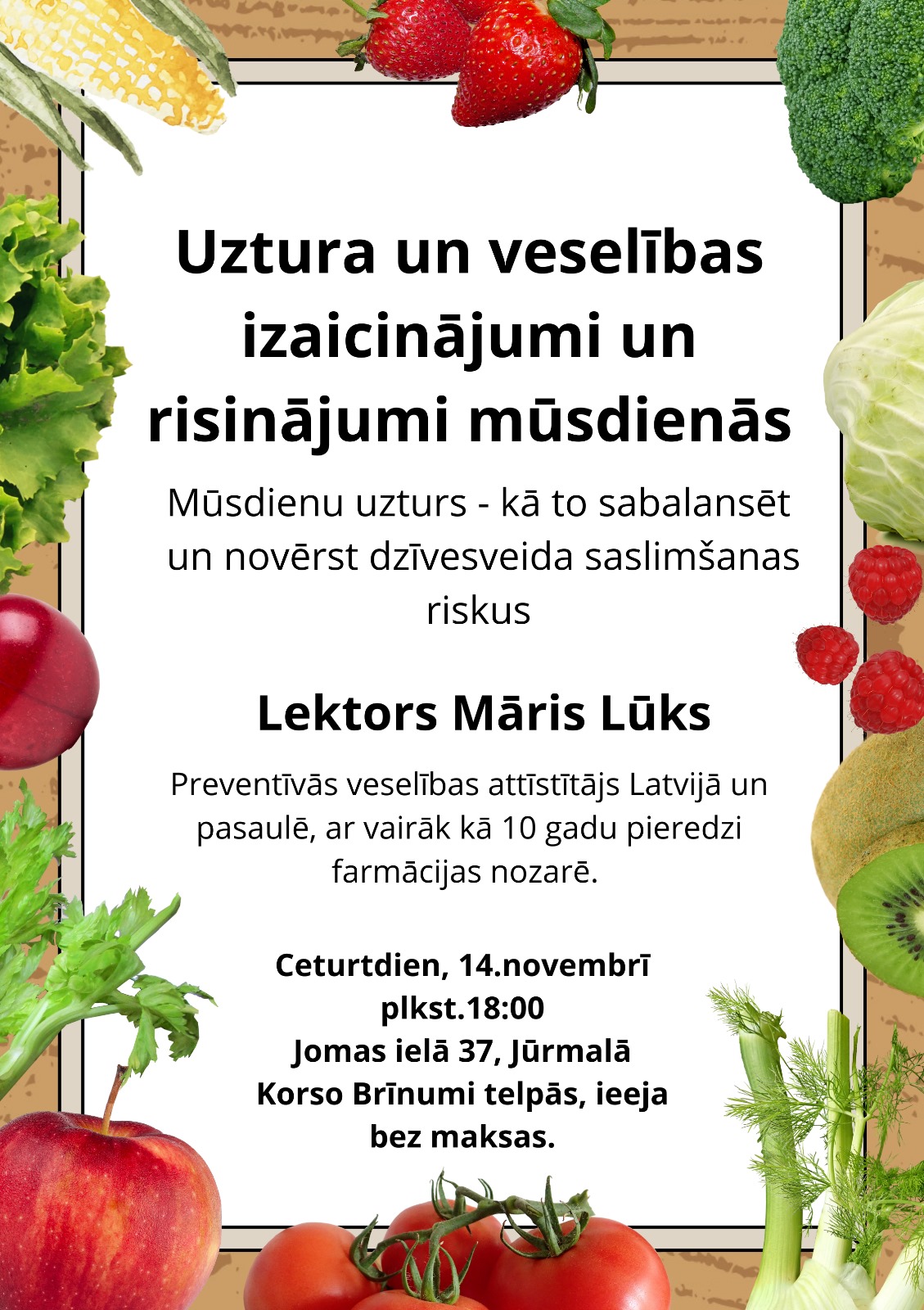 Ceturtdien, 14. novembrī pl.18:00 aicinam visus, kas seko vai vēlas sekot savam uzturam, kam rūp sava veselība uz BEZMAKSAS lekciju, kā musdienās sabalansēt uzturu un novērst dzīvesveida saslimšanas riskus.