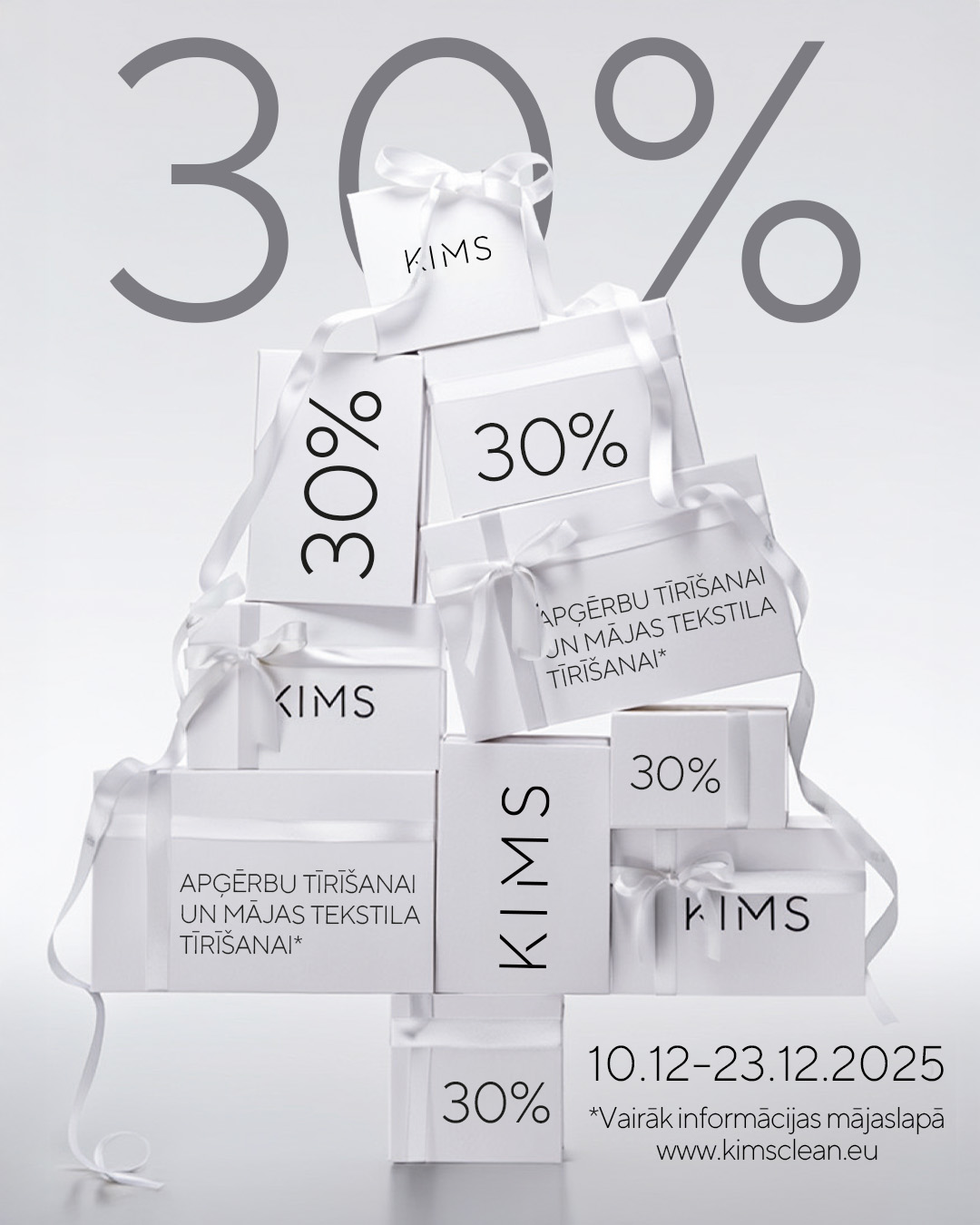 Apģērbu tīrītava KIMS pirms svētkiem dāvina īpaši patīkamas atlaides - 30% apģērbu tīrīšanai un mājas tekstila tīrīšanai.