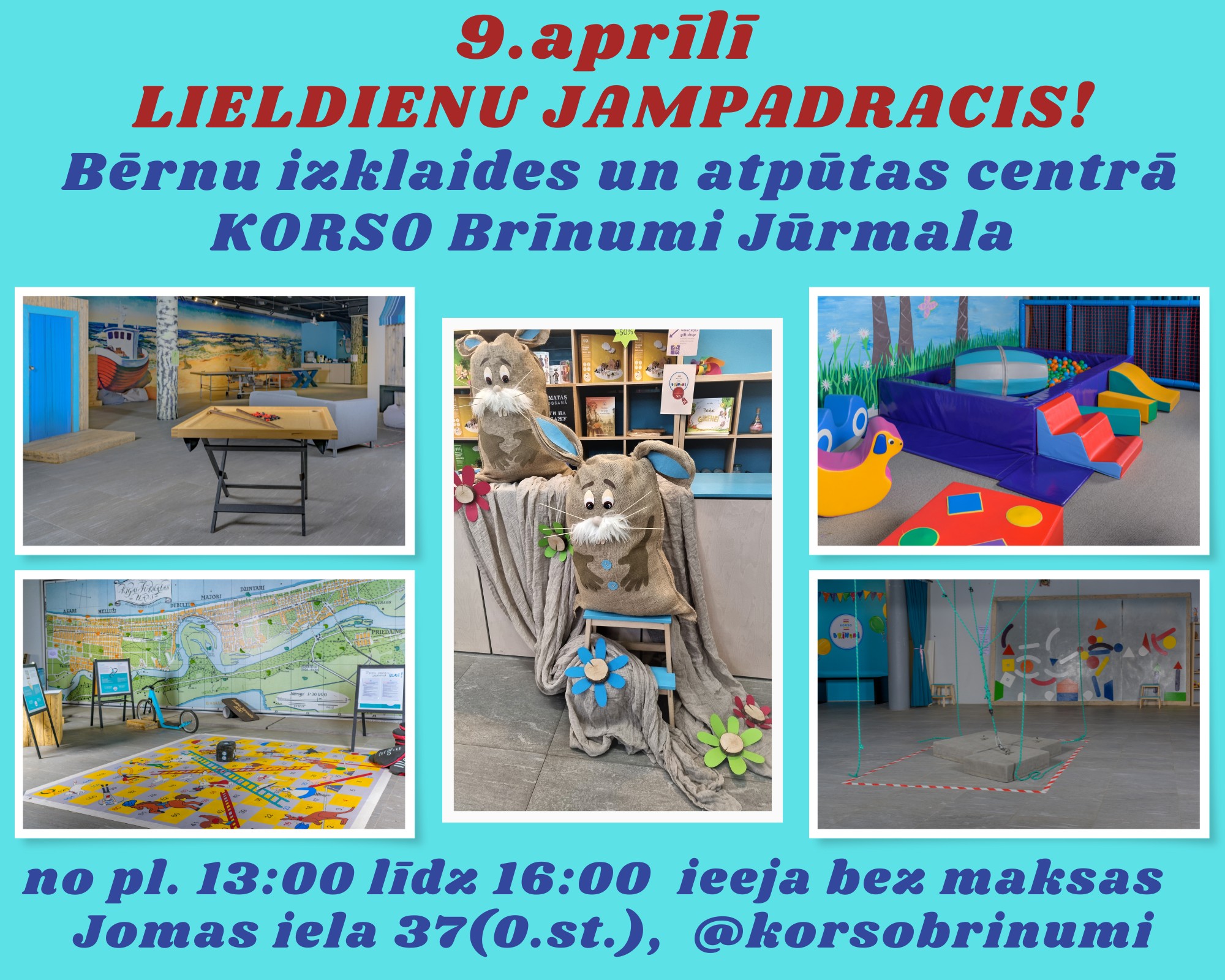 - aprīlī, Korso Brīnumos, Jomas ielā 37(KORSO Galerija cents, 0 stāvā) ikvienam par prieku notiks lielais Lieldienu jampadracis no pl. 13:00 līdz 16:00, ieeja bezmaksas.