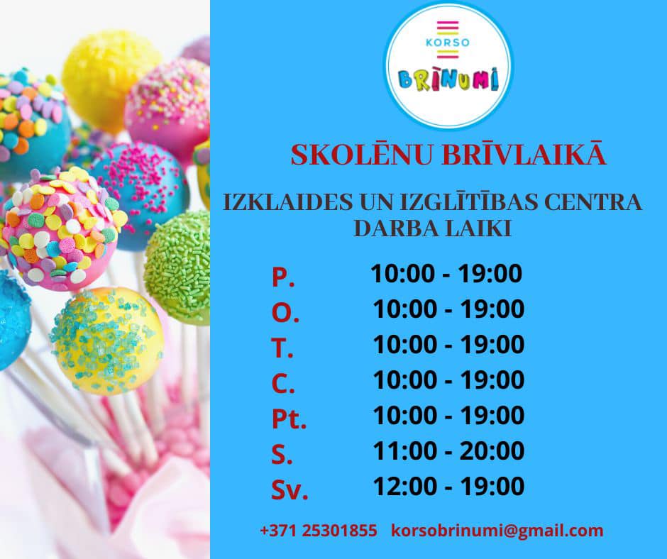 Skolēnu brīvlaikā bērnu centrs Korso Brīnumi gaida jūs ciemos katru dienu.