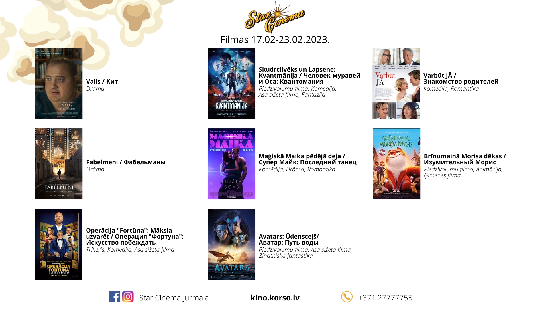 Šonedēļ Star Cinema svin 5 gadu dzimšanas dienu! Nāc uz kino piektdien, sestdien un svētdien un laimē loterijā. Piedalīties varēs katrs, kurš iegādāsies biļetes! Neviens nepaliks bez balvas! Kopā 160 balvas - uzkodas, dzērieni, bezmaksas biļetes, kluba kartes un dāvanu kartes.