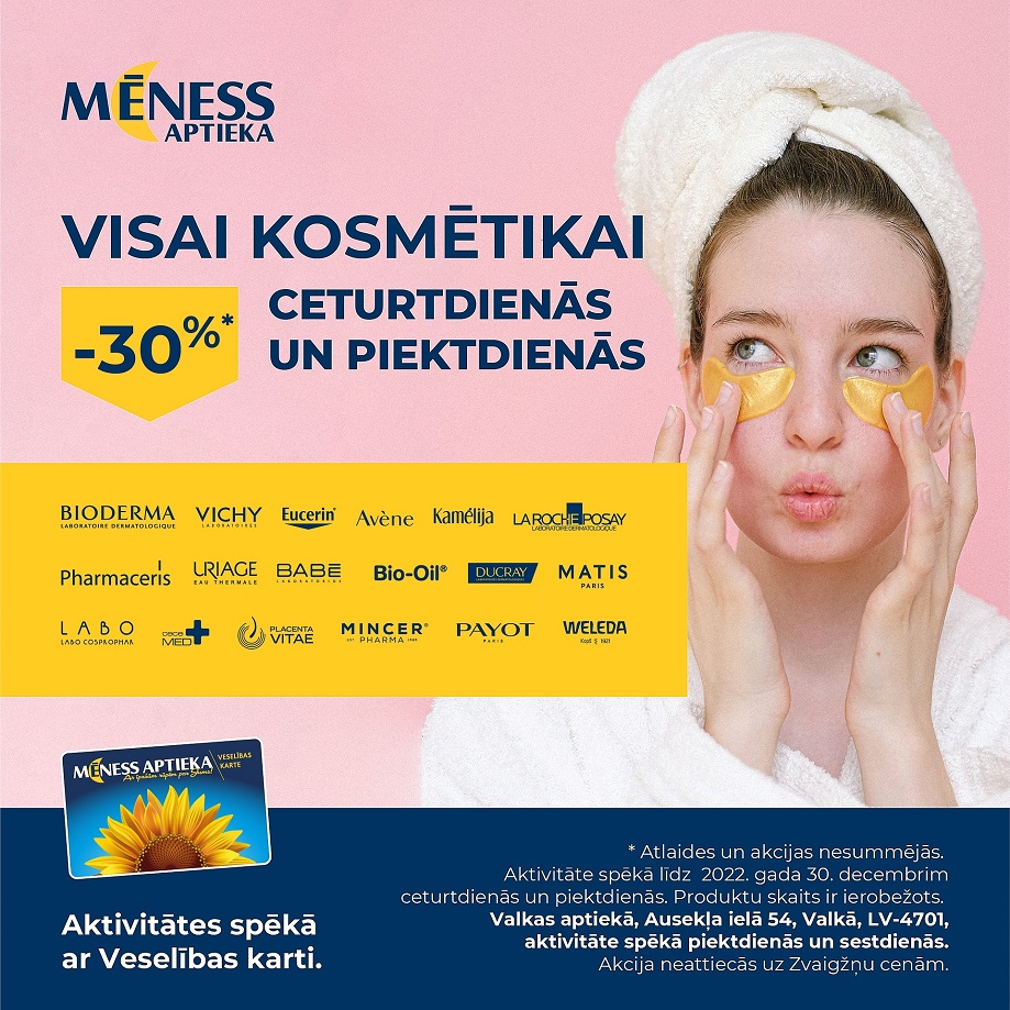 Izdevīgs piedāvājums kosmētikai no Mēness Aptiekas ceturtdienās un piektdienās.
