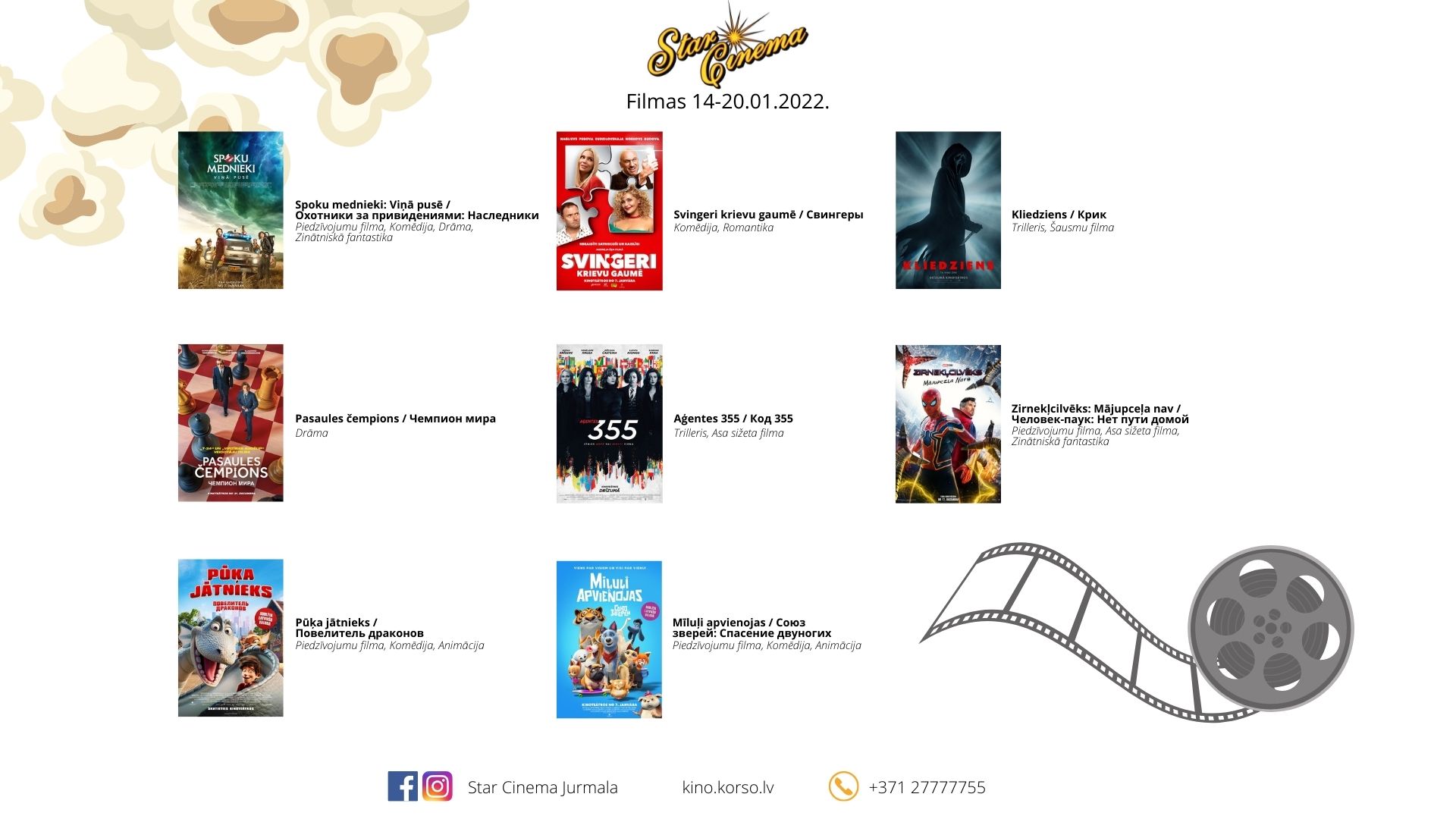 Jaunākais filmu repertuārs kinoteātrī Star Cinema Jūrmala.