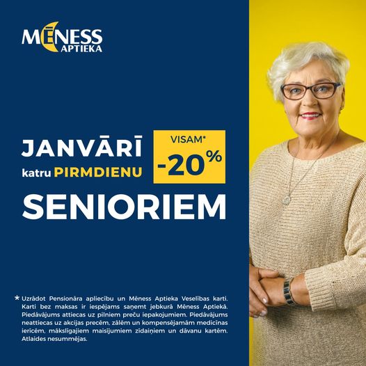 Seniori, katru pirmdienu Mēness Aptieka īpašas atlaides tieši Jums!